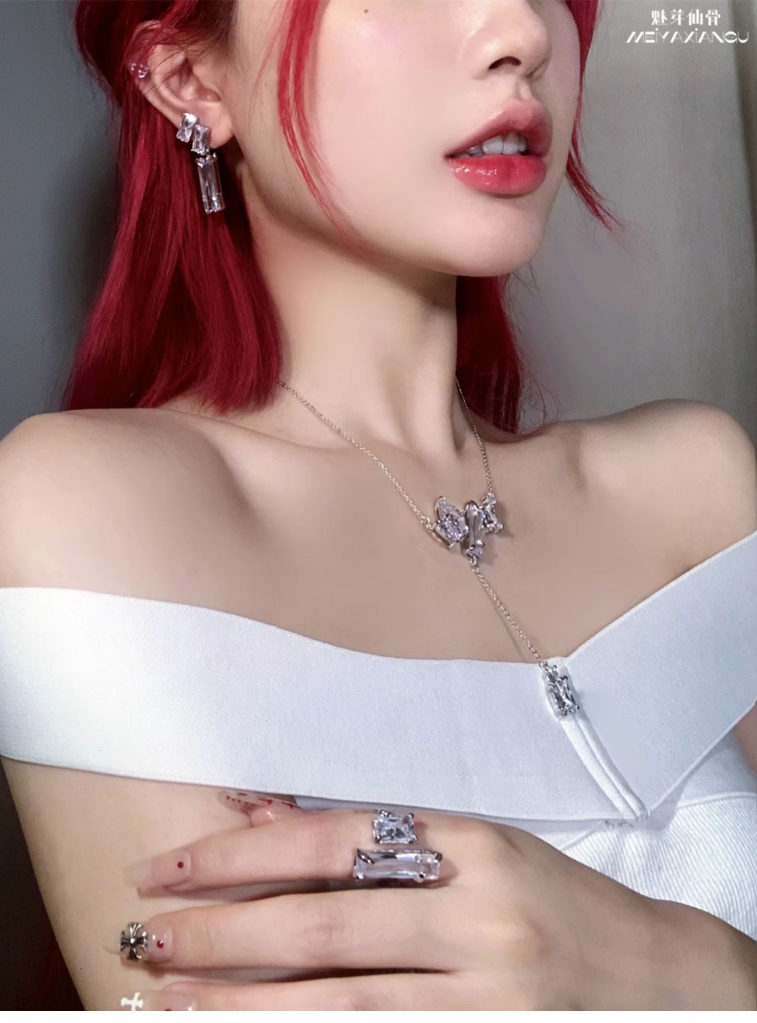 魅芽仙骨 夏季高冷冰碎美人ins小眾設計高級感鎖骨鏈女項鏈套裝新