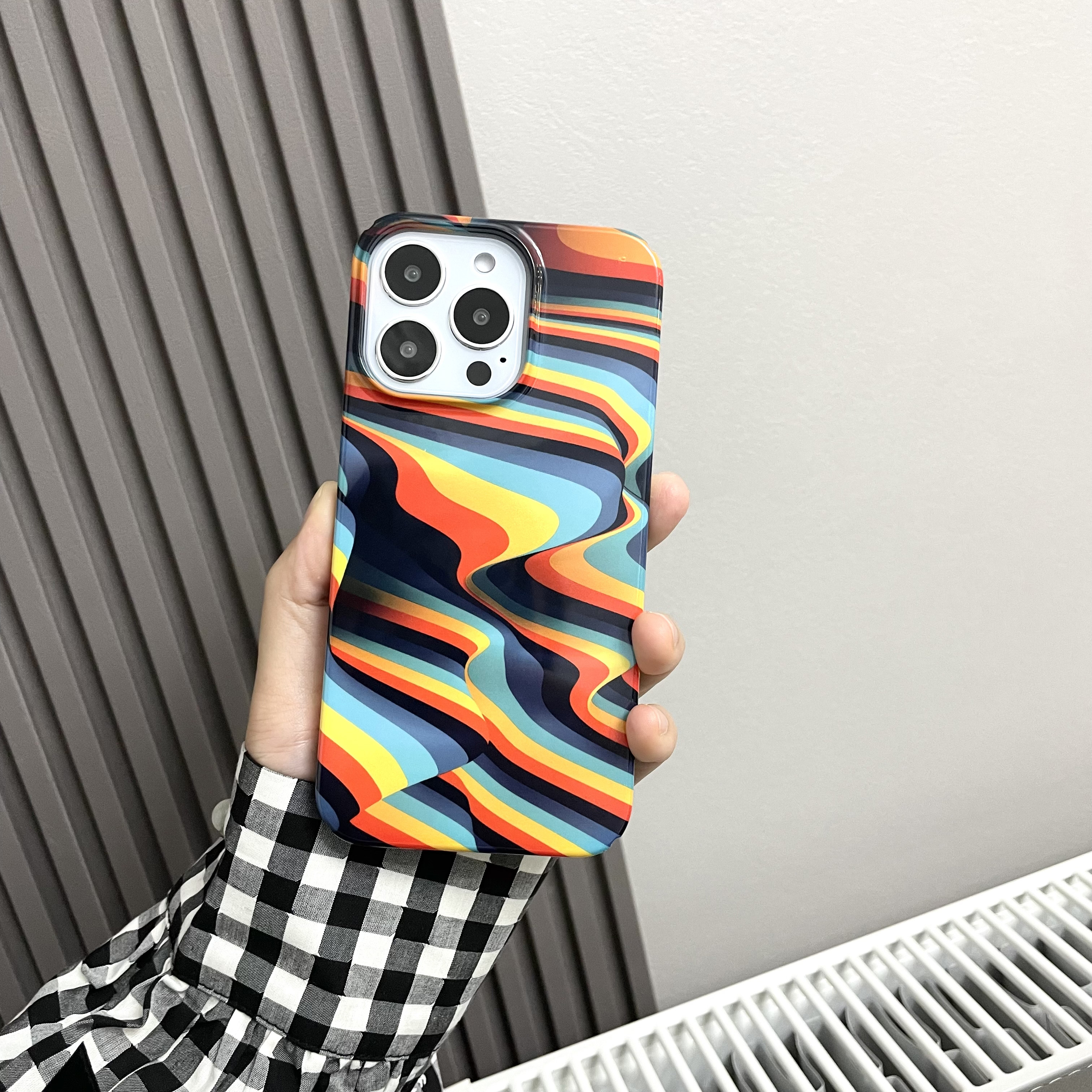 漸變彩虹適用蘋果15promax手機殼新款個性女款鏡頭全包潮牌透明創意可愛卡通防摔超薄小眾網紅PC保護套