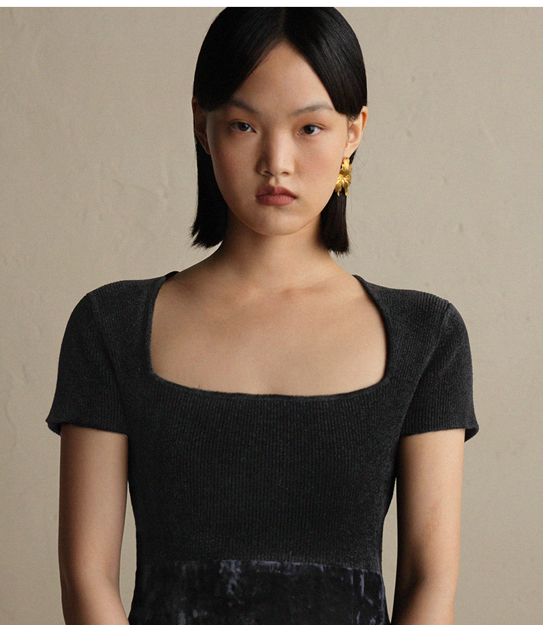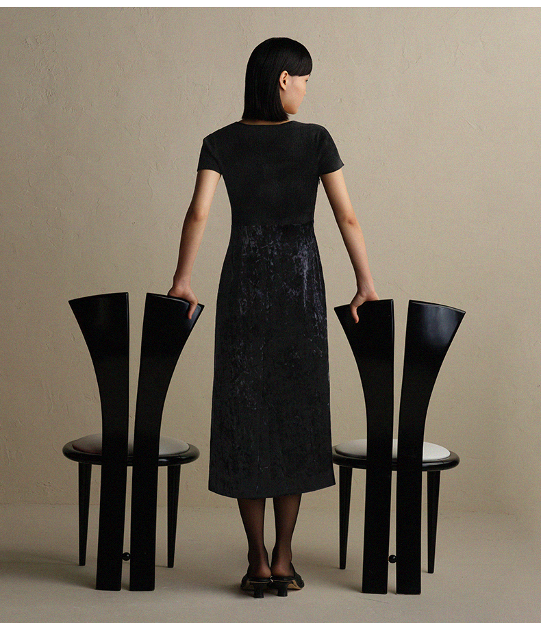 【滿減直降】致知 雨淋玲 法式連衣裙女秋針梭拼_冰花絨