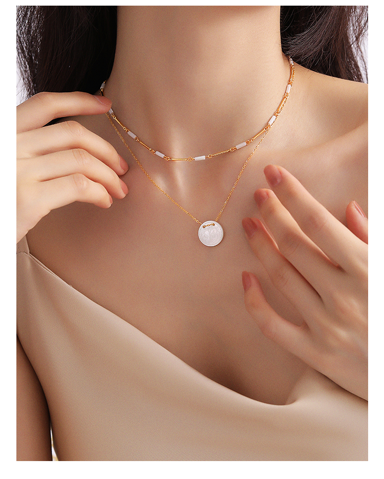 花朵貝殼圓形吊墜項鏈女輕奢小眾設計高級感鎖骨鏈氣質名媛配飾品