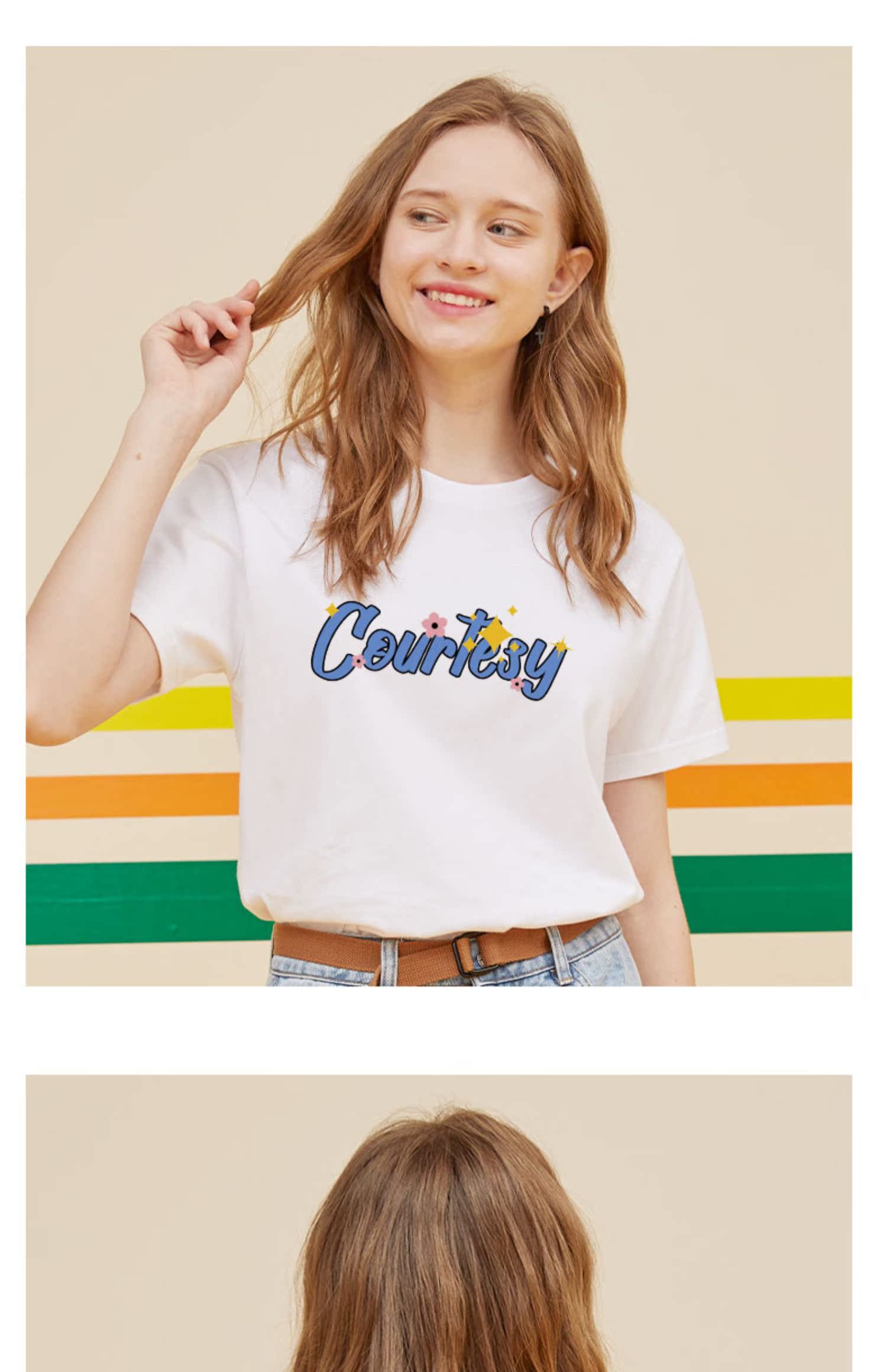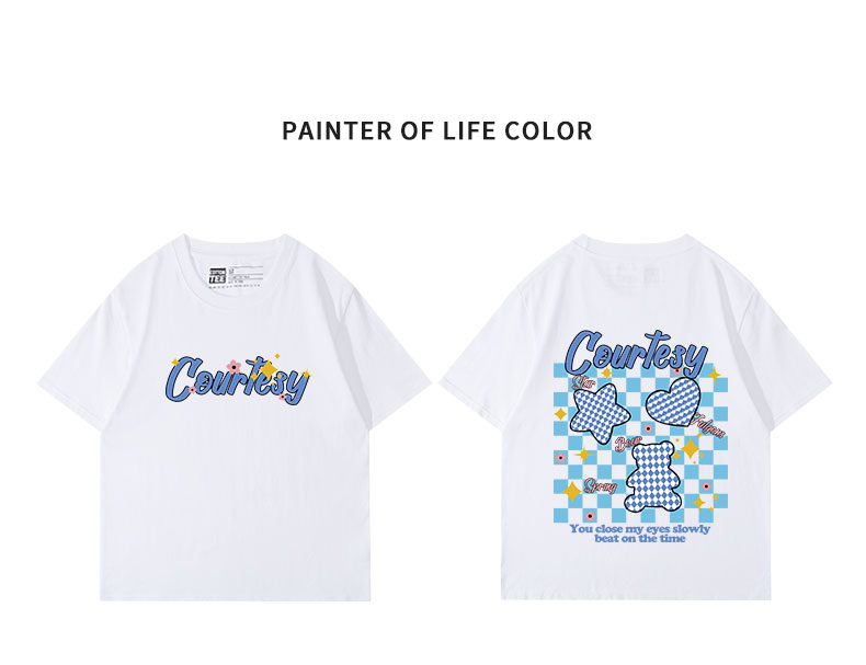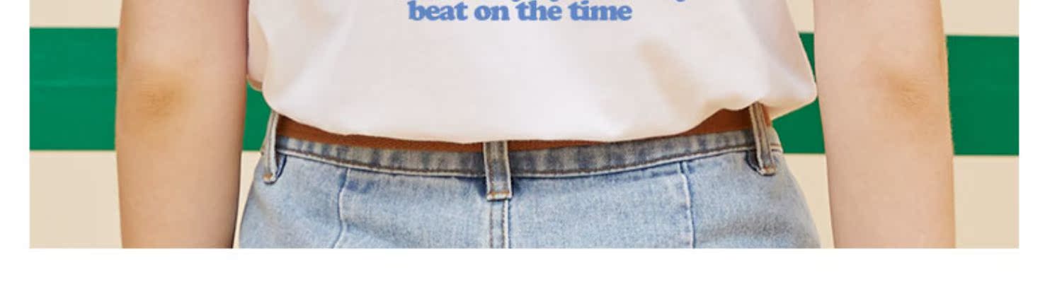 棉牽甜酷風夏季上衣后背印花卡通t恤正肩短袖女顯瘦100%純棉半袖