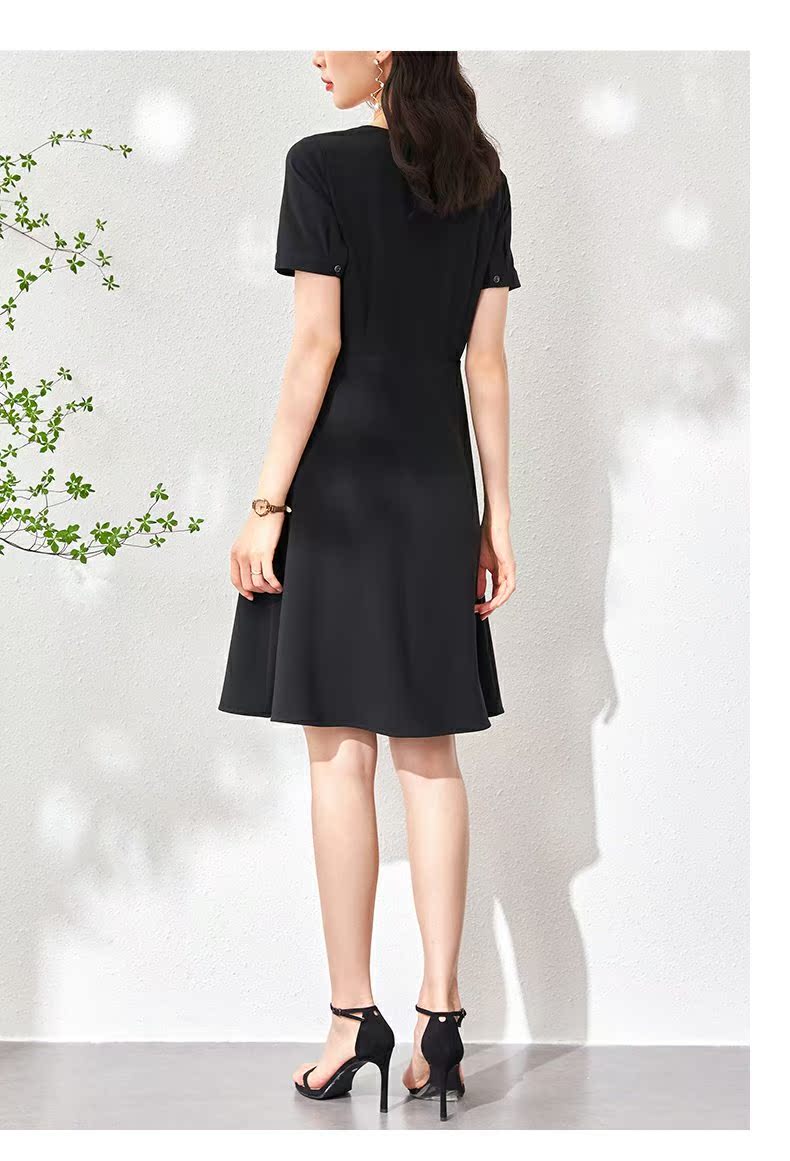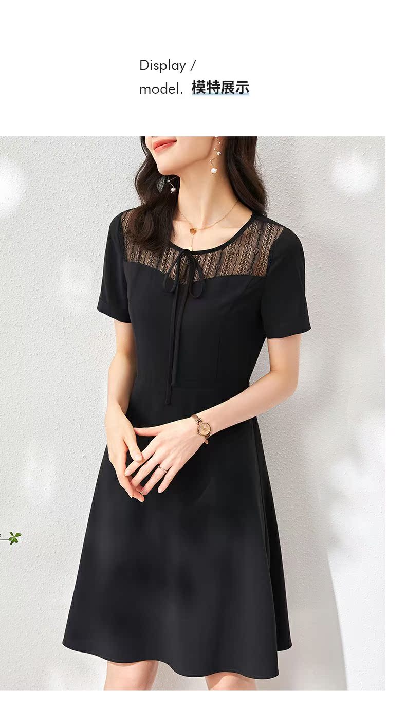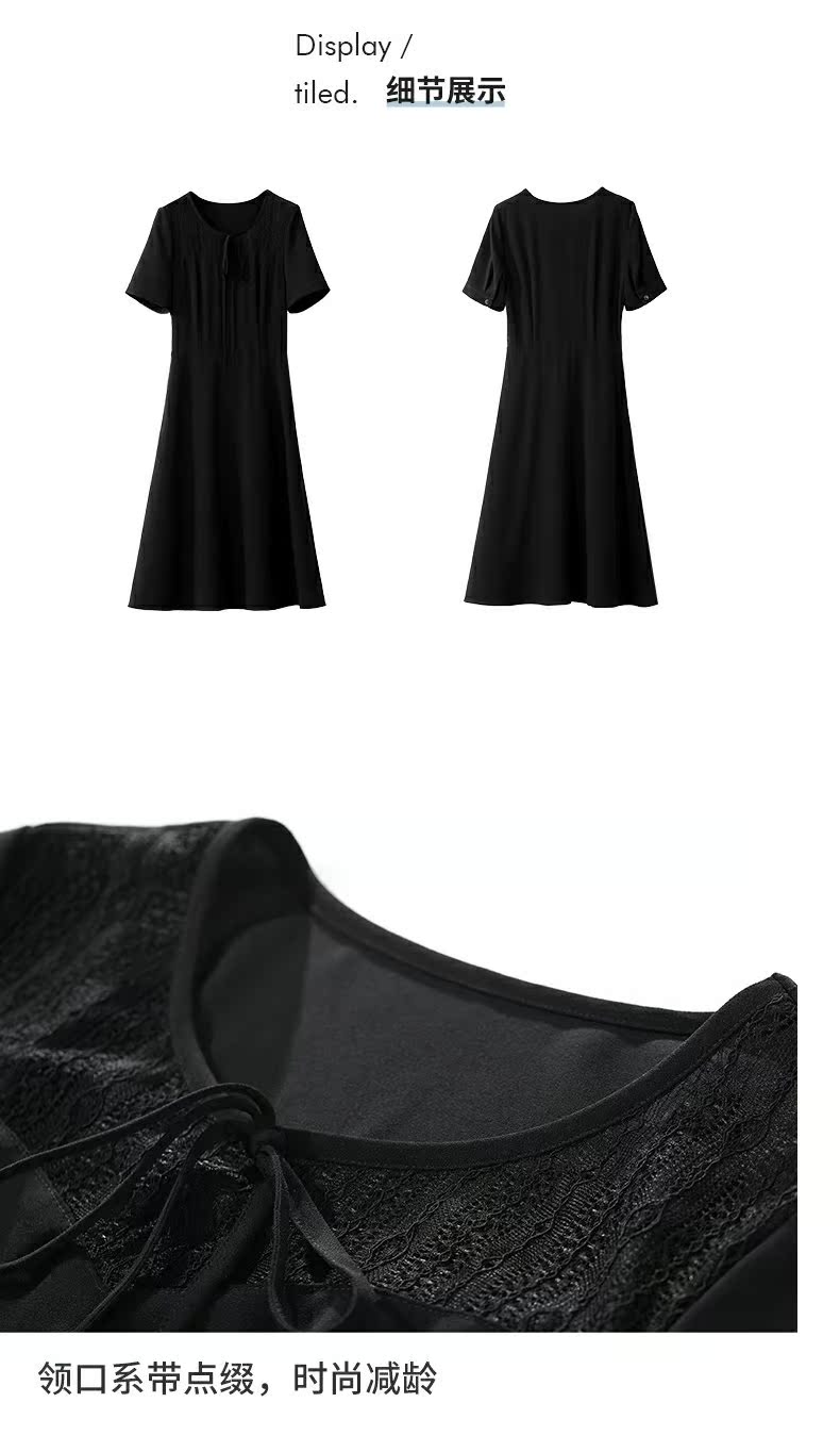 osa歐莎法式黑色蕾絲女春裝連衣裙