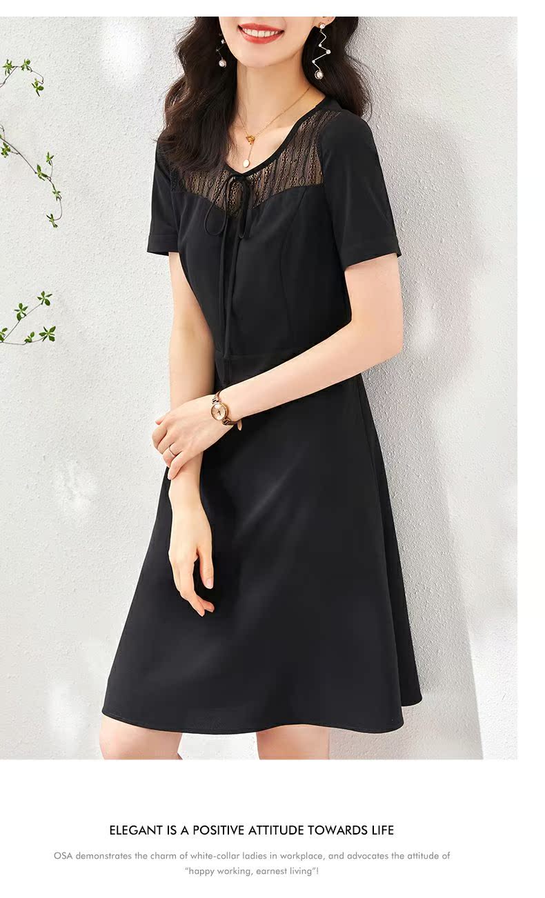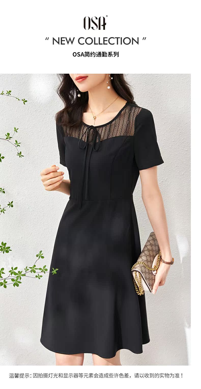 OSA歐莎名媛風知性通勤收腰顯瘦蕾絲連衣裙2023新款女夏秋