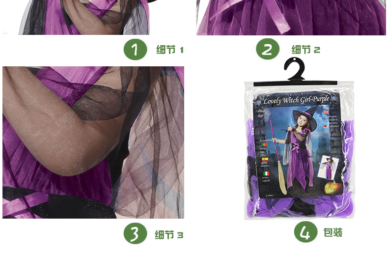 萬圣節cosplay服裝兒童巫婆表演服幼兒魔法巫婆網紗女巫婆公主裙