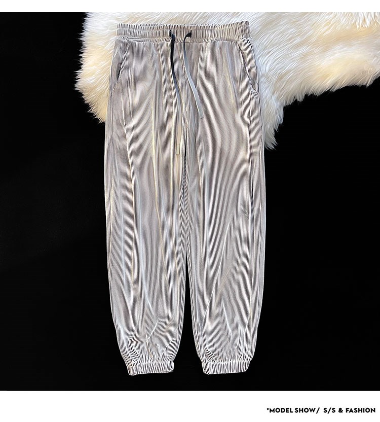 夏季薄款冰絲褲子男潮牌寬松運動九分褲ins潮流高街休閑束腳褲9分