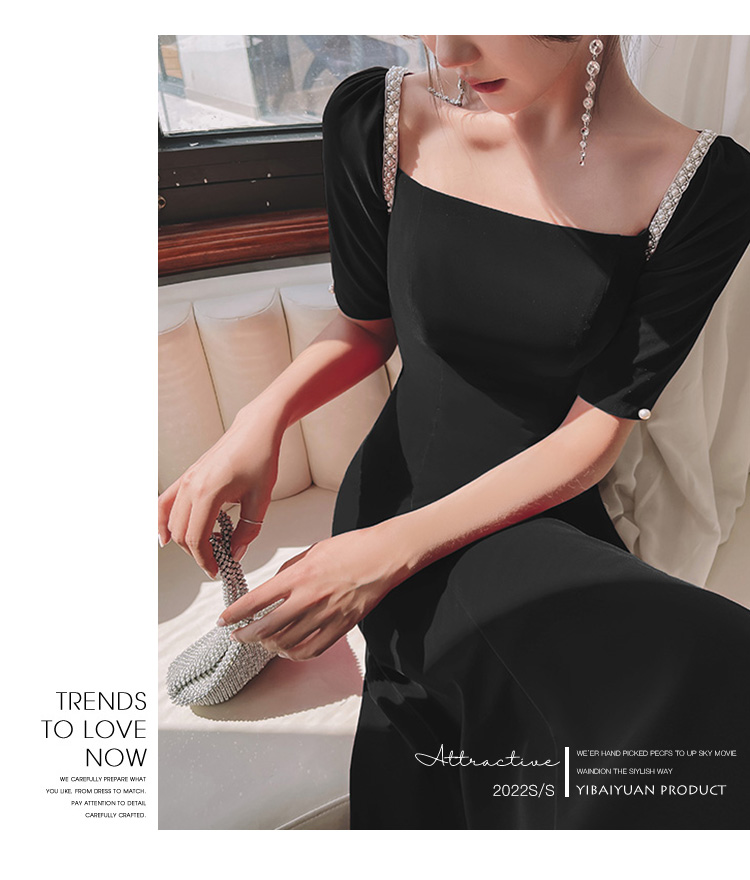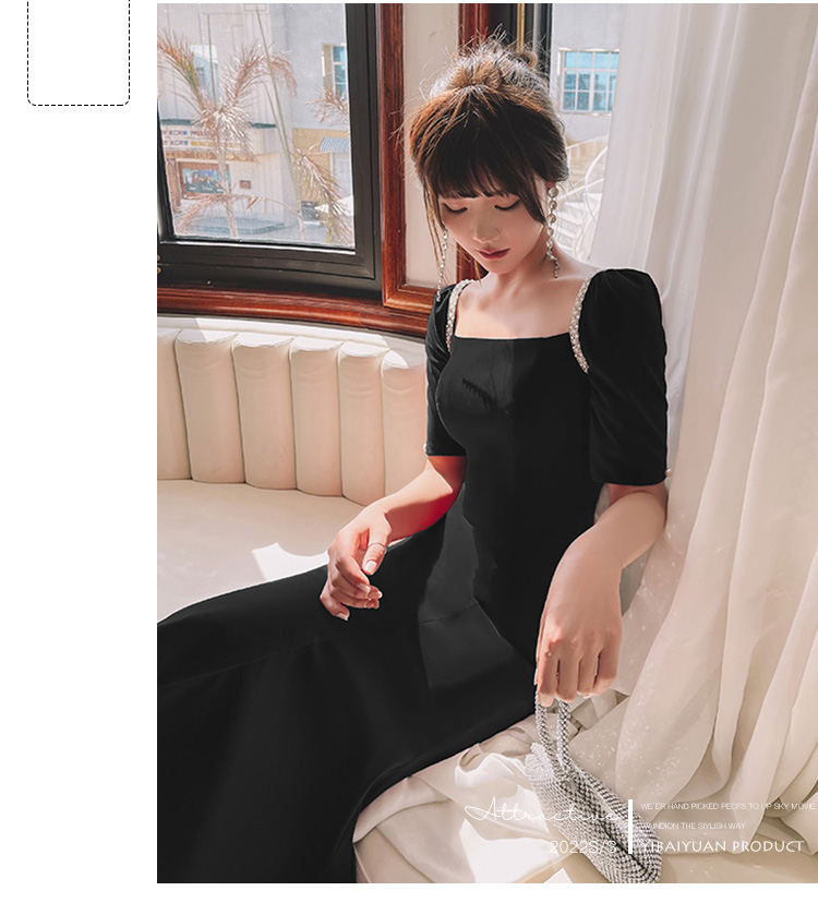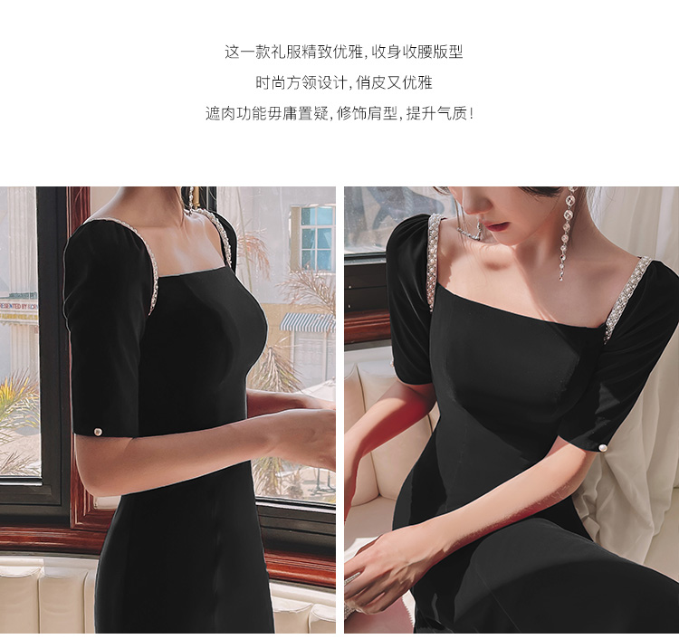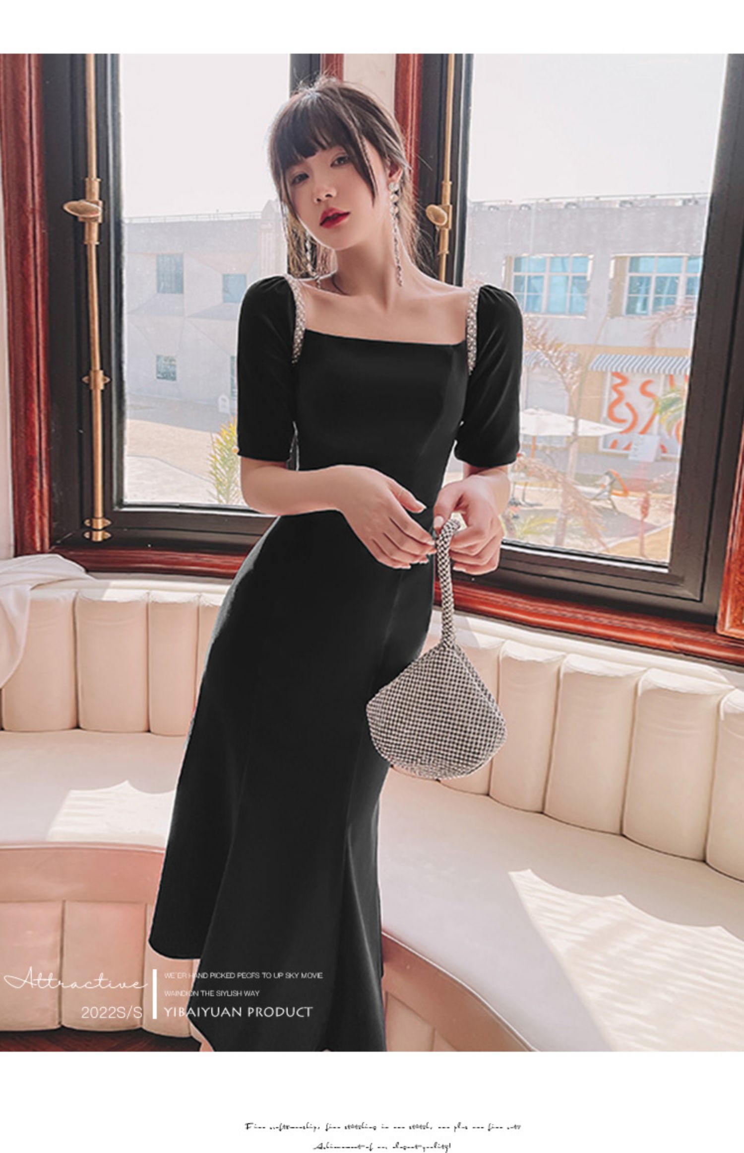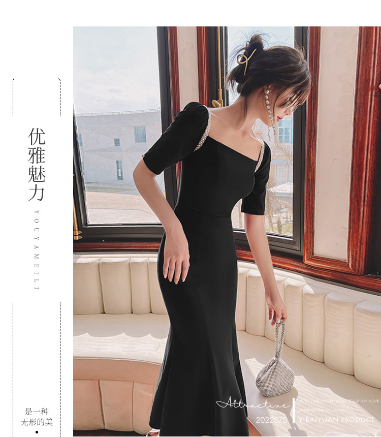 晚禮服女2023新款夏季黑色氣質名媛高端連衣裙主持人魚尾顯瘦小眾
