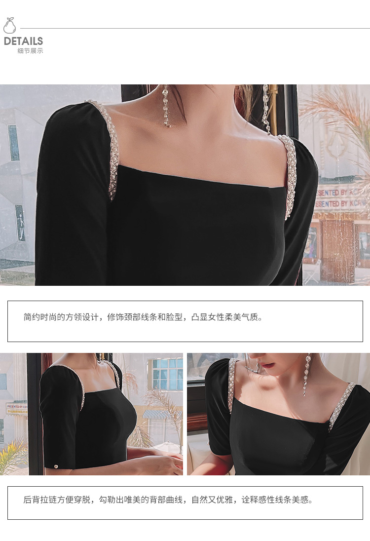 黑色女宴會主持人魚尾連衣裙晚禮服