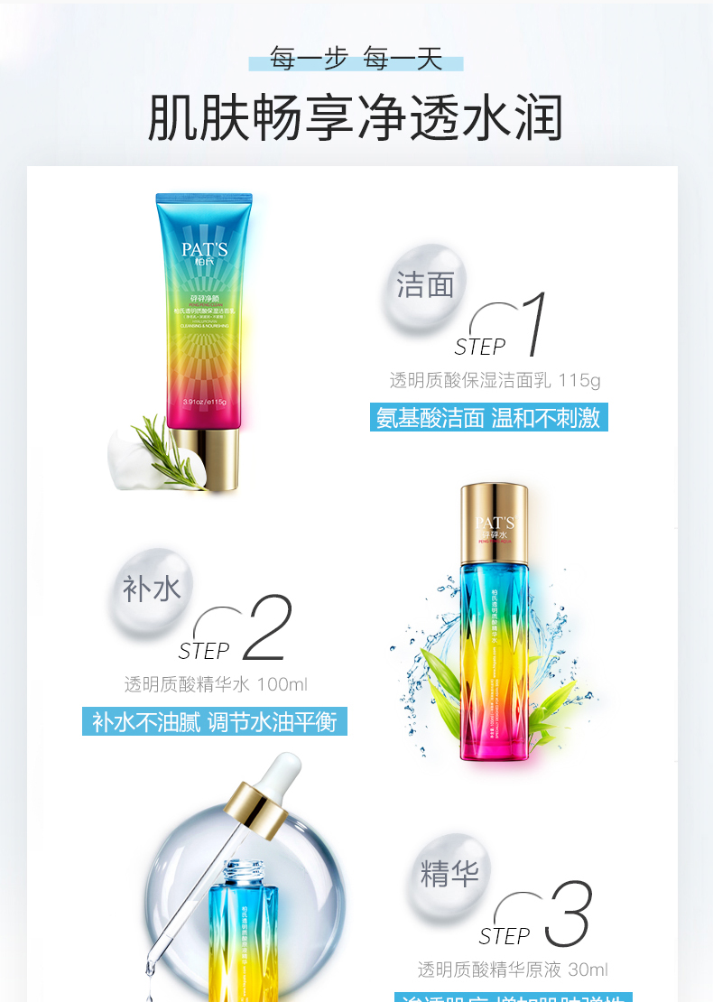 柏氏砰砰化妝品套裝水乳液霜玻尿酸