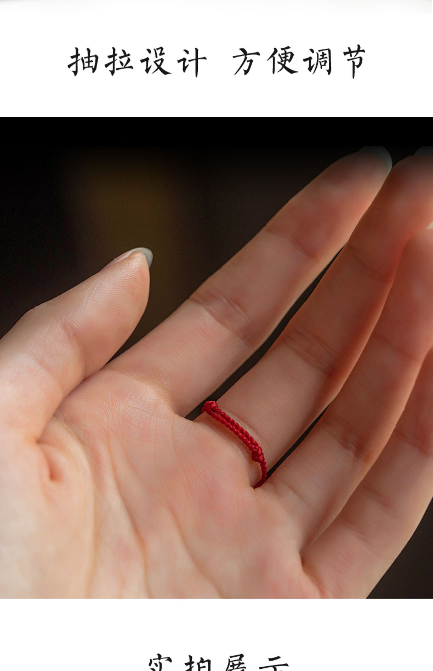 花素足金999黃金錢幣轉運戒指女編繩指環極細款可調節紅繩飾品