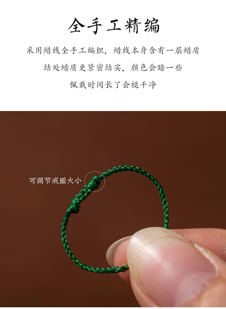 18k金芝麻珠黃金手工編繩特細戒指可調節疊戴小眾設計禮物指環