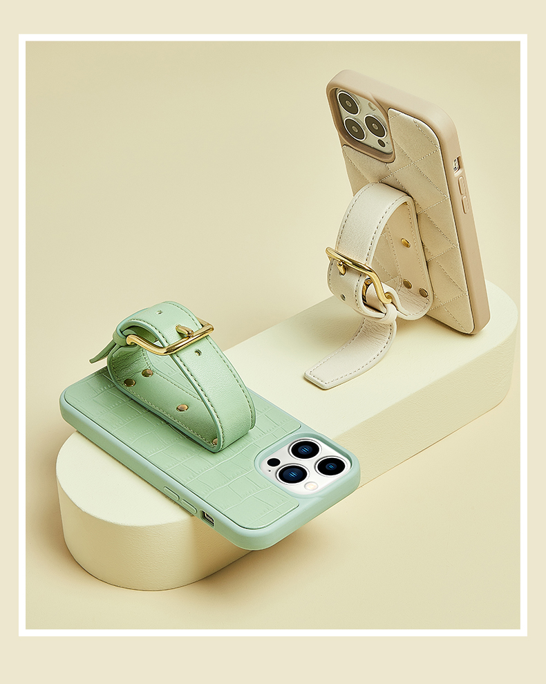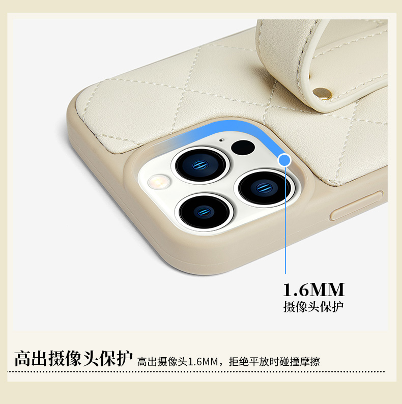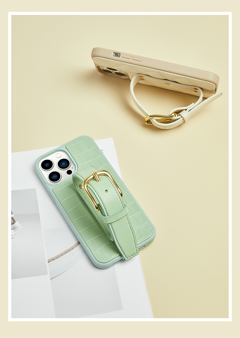 CUSTYPE適用蘋果15pro手機殼14promax手腕帶支架便攜式防摔皮質女高級個性輕奢iPhone13手機套女新款