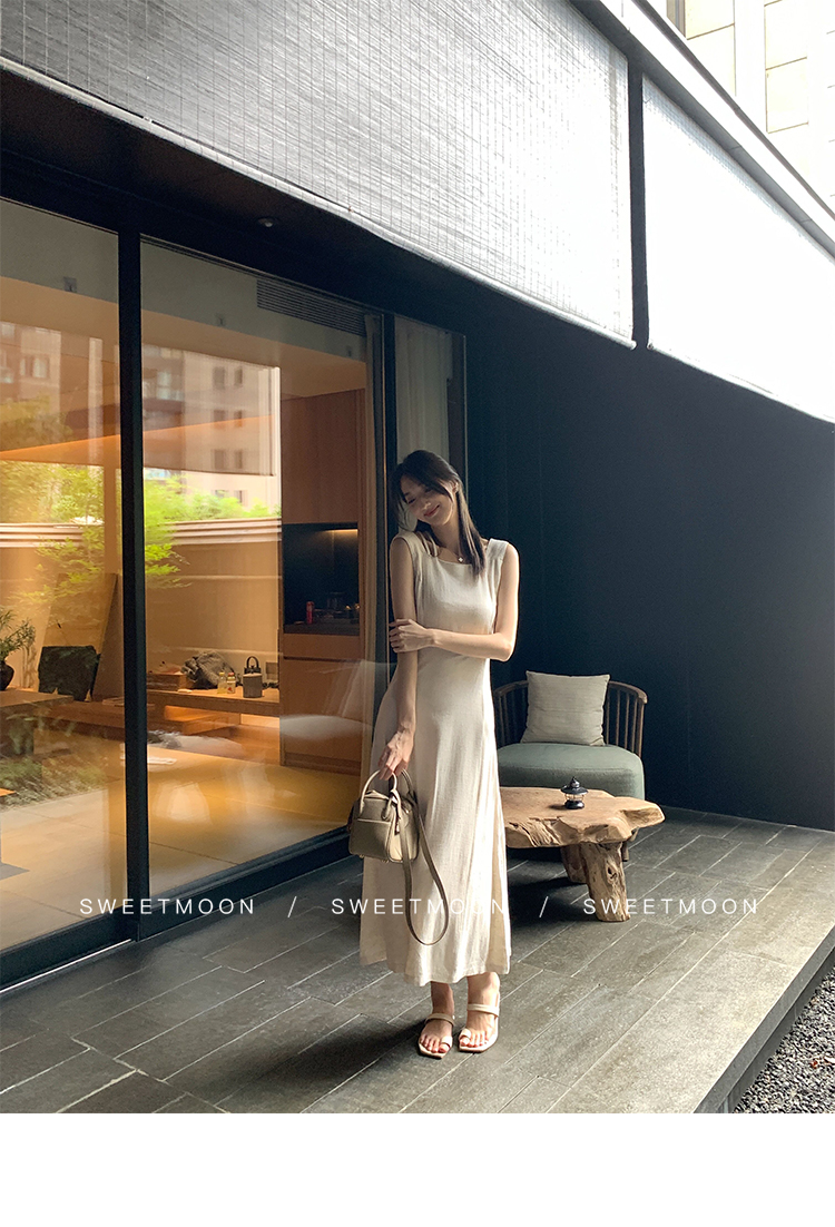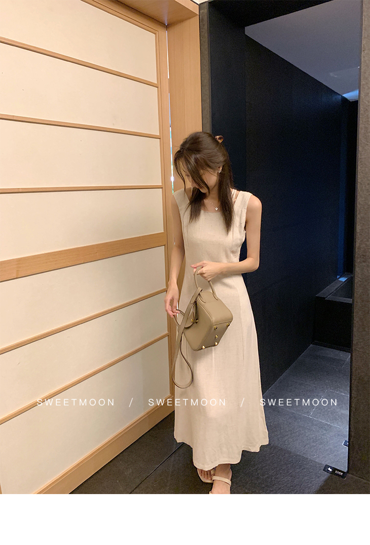 剁椒sweetmoon棉麻露背收腰吊帶連衣裙顯瘦修身無袖打底吊帶裙女