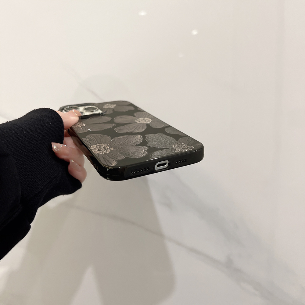 ins油畫花朵適用iPhone15promax蘋果14手機殼11復古8p黑色xs軟套