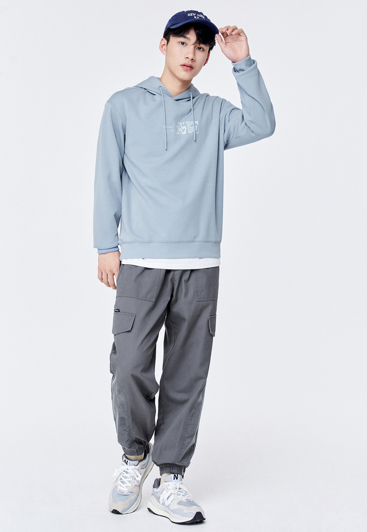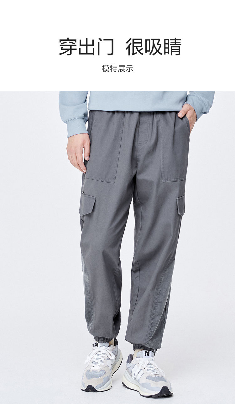 森馬休閑褲男拼接燈芯絨褲子2023秋季新款束腳工裝褲男士灰色長褲