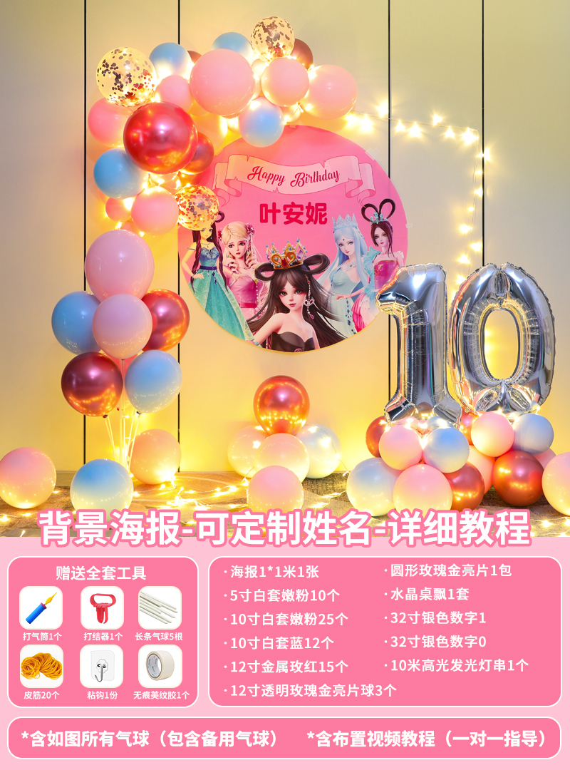 葉羅麗女孩十周歲生日布置裝飾場景網紅寶寶兒童氣球套餐背景墻10
