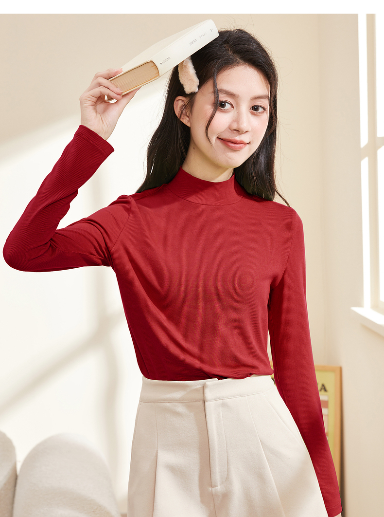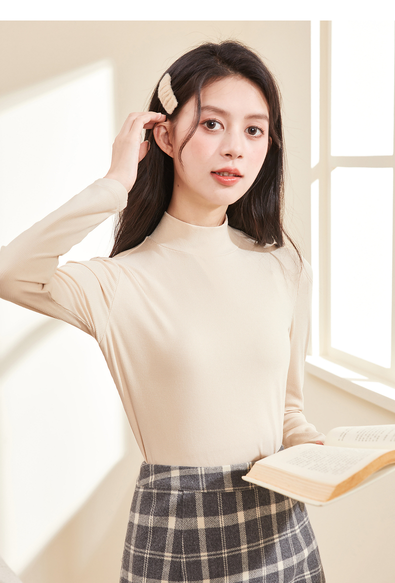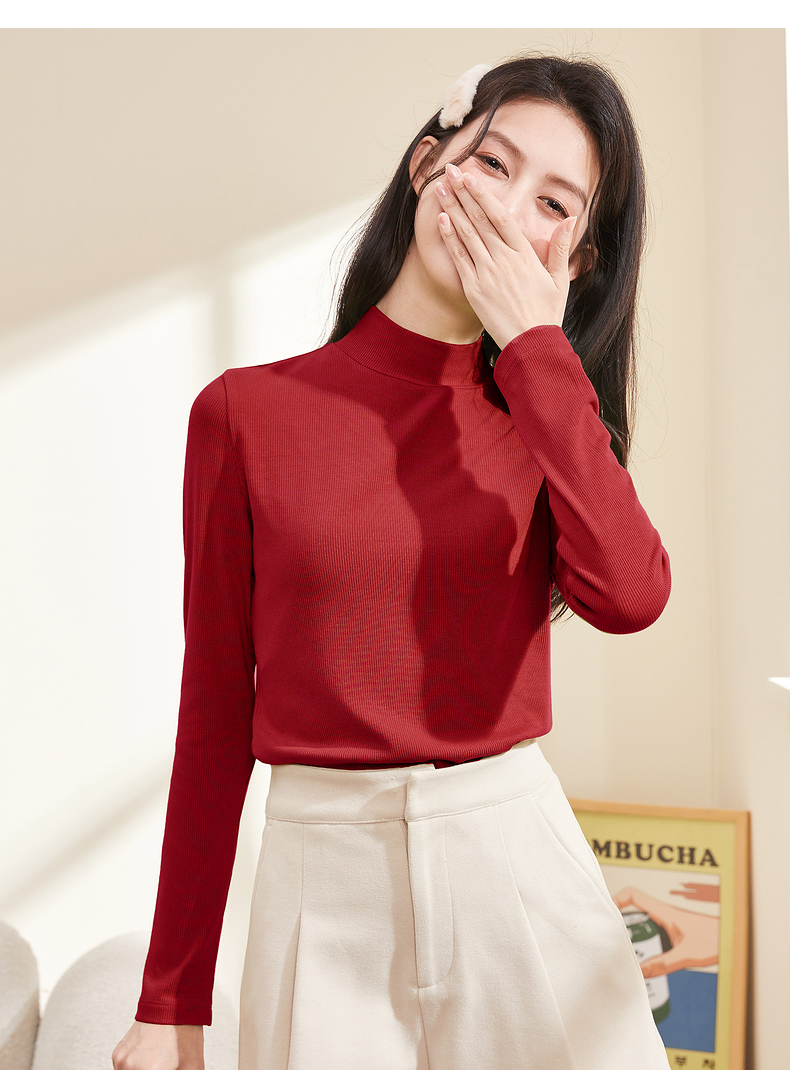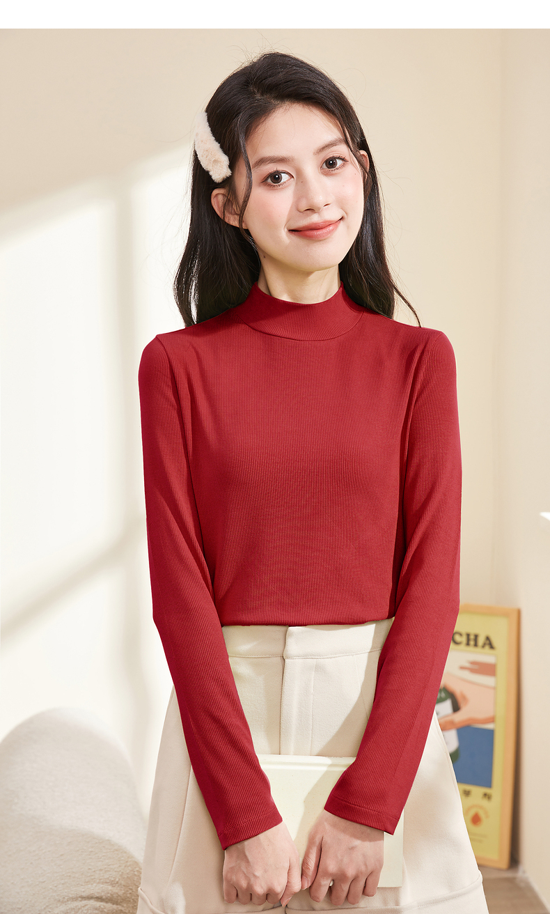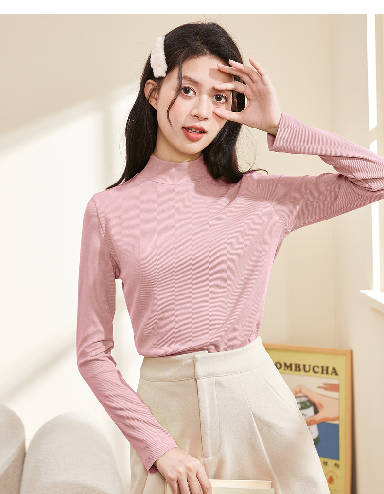 半高領螺紋打底衫女內搭立領修身上衣2023年秋冬顯瘦百搭長袖T恤