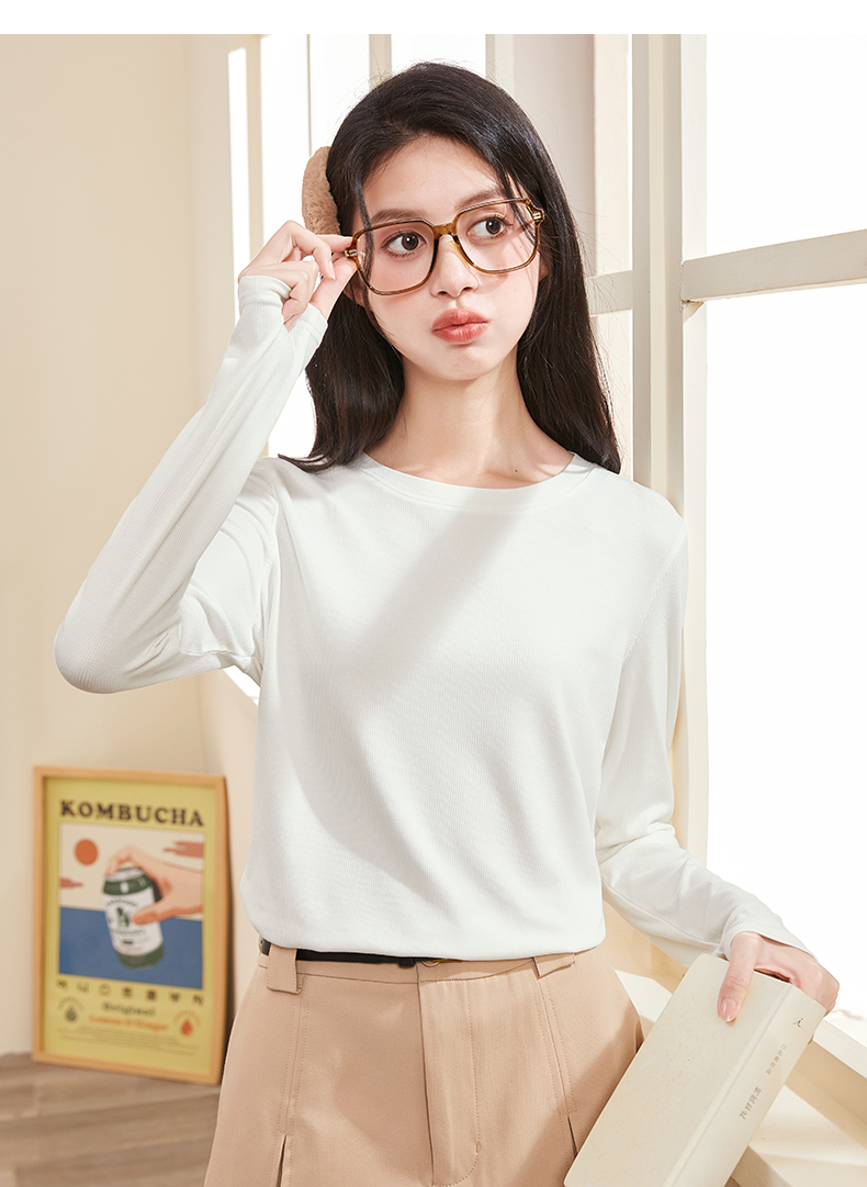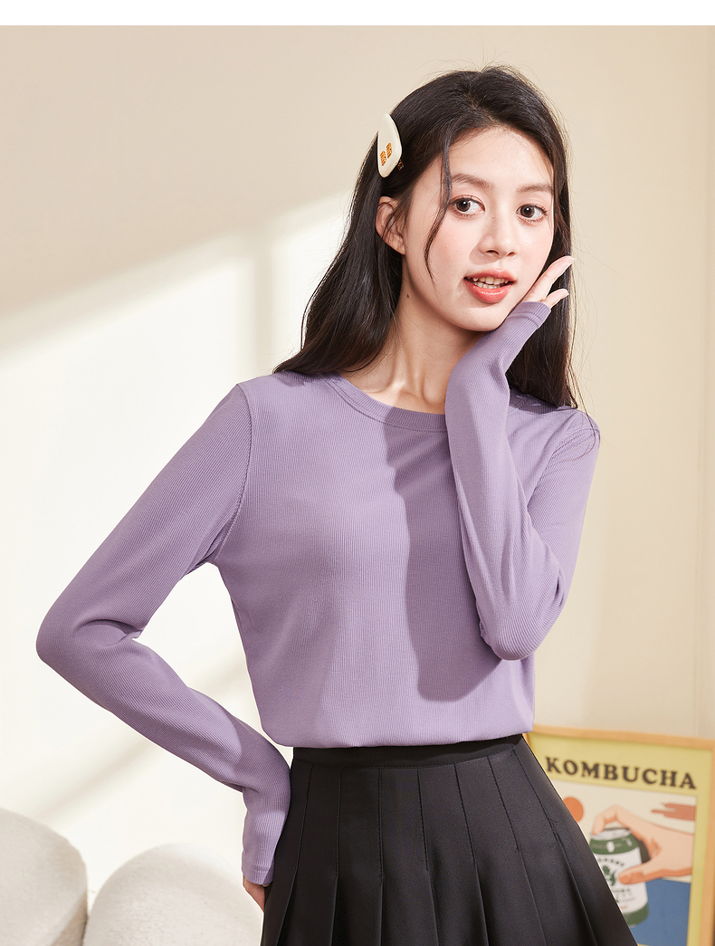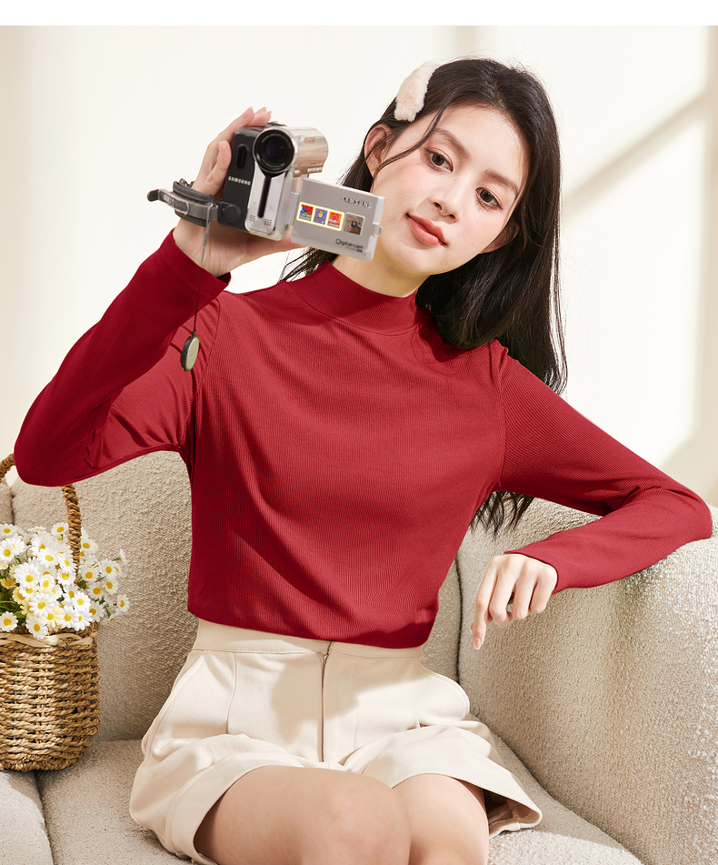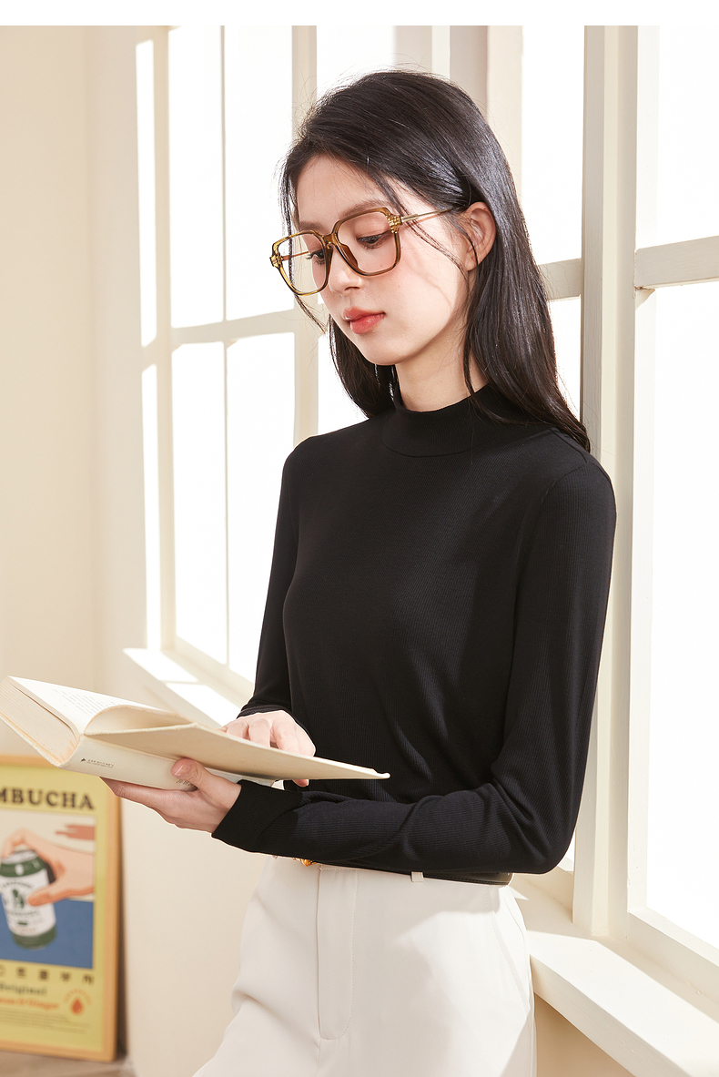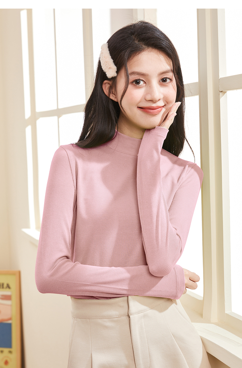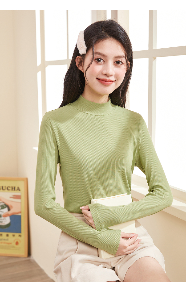 半高領螺紋打底衫女內搭立領修身上衣2023年秋冬顯瘦百搭長袖T恤