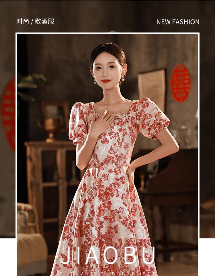 訂婚連衣裙2023新款紅色夏季敬酒服