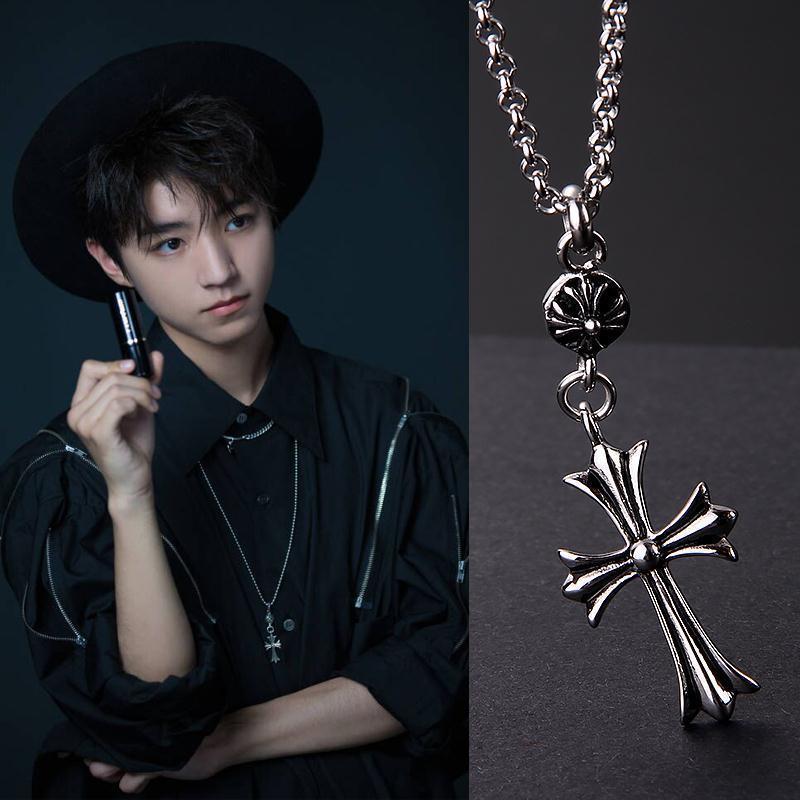 潮牌盒子復古合金十字架吊墜衛衣鏈