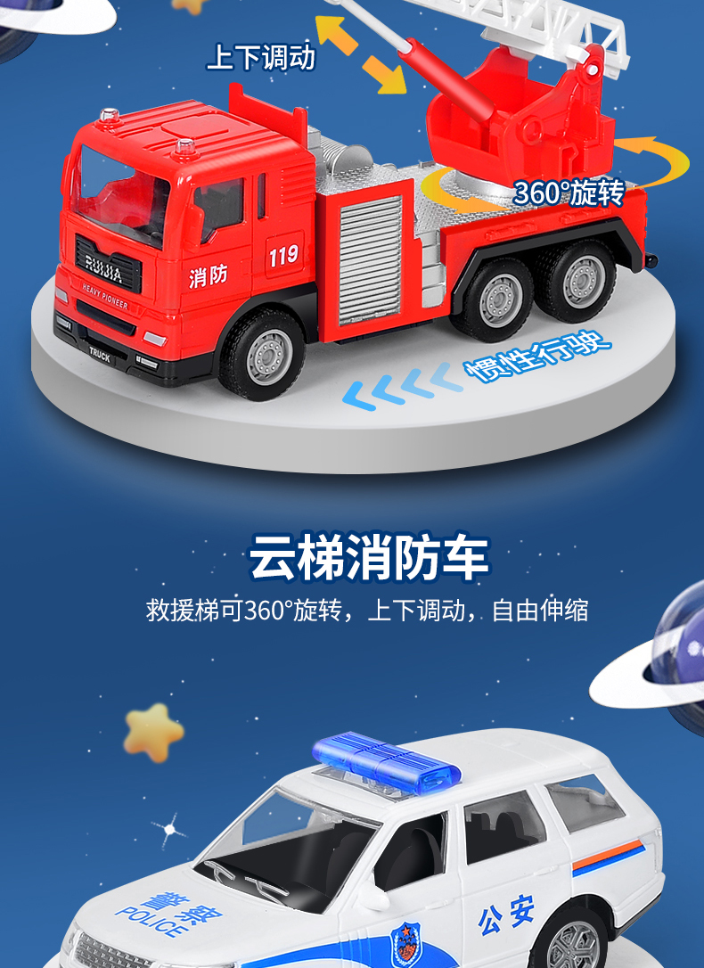 警車救護車消防車玩具套裝禮盒小汽車模型仿真玩具車兒童男孩玩具