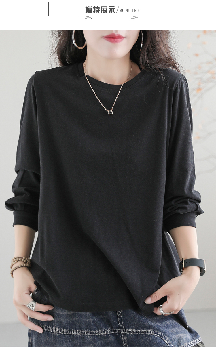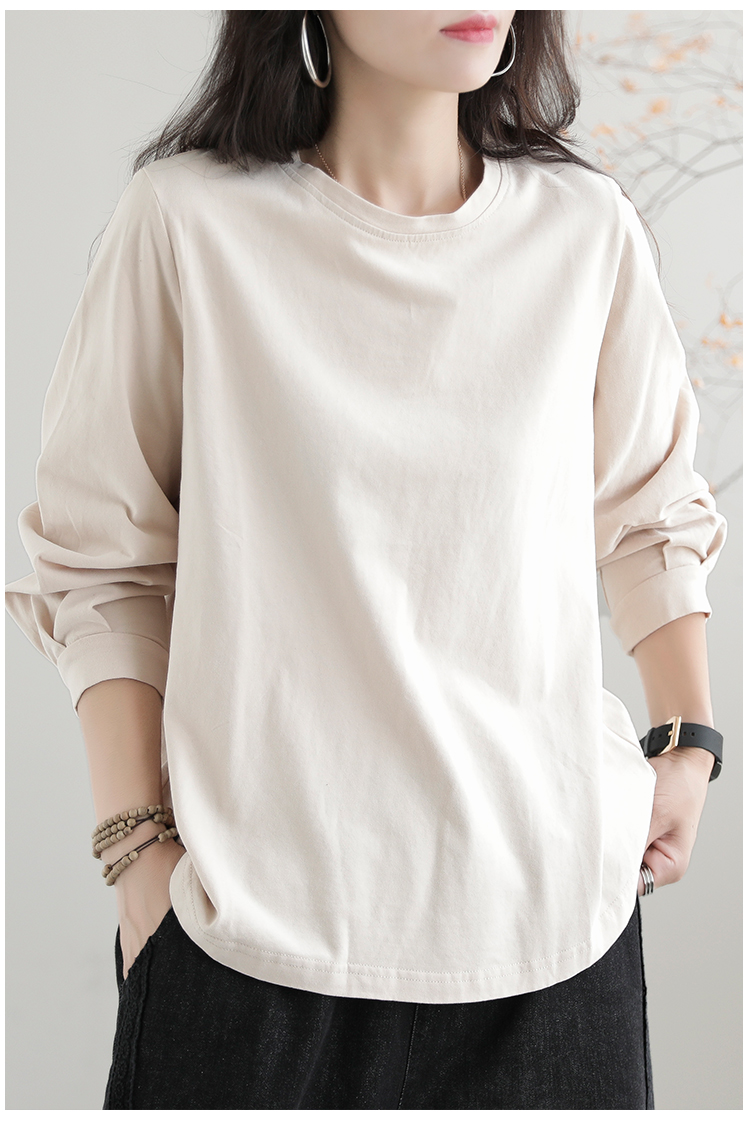 純棉長袖t恤女秋季2023新款女裝大碼內搭上衣寬松全棉打底衫秋冬