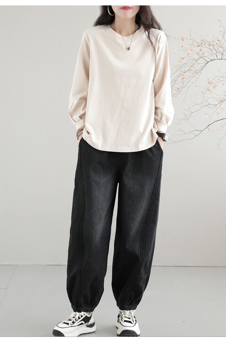 咖咪羽打底衫女原創休閑秋新款女士上衣圓領長袖寬松復古女裝衛衣