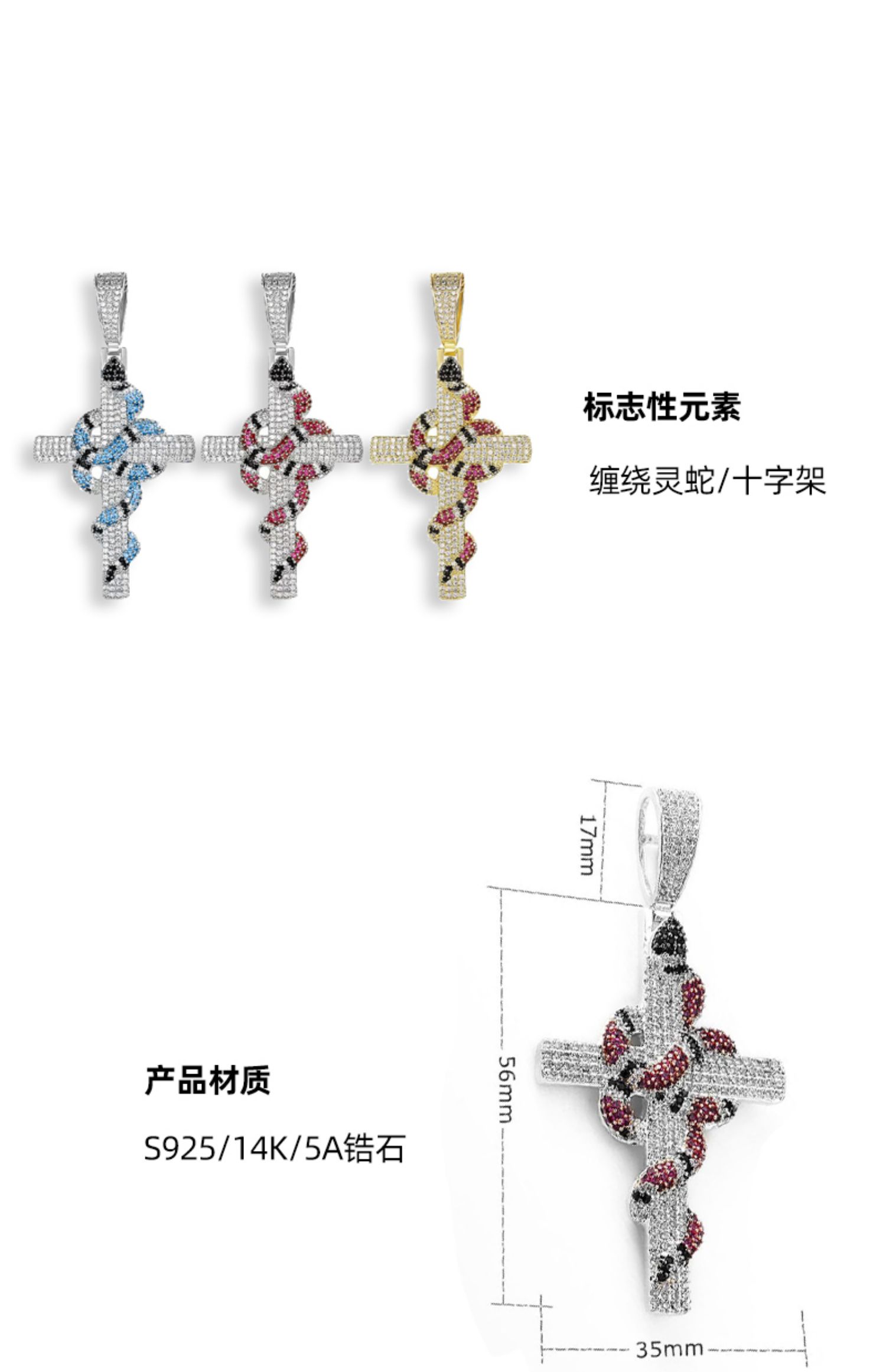 官方正品吳磊同款珊瑚蛇十字架項鏈男潮歐美嘻哈滿鉆吊墜小眾設計