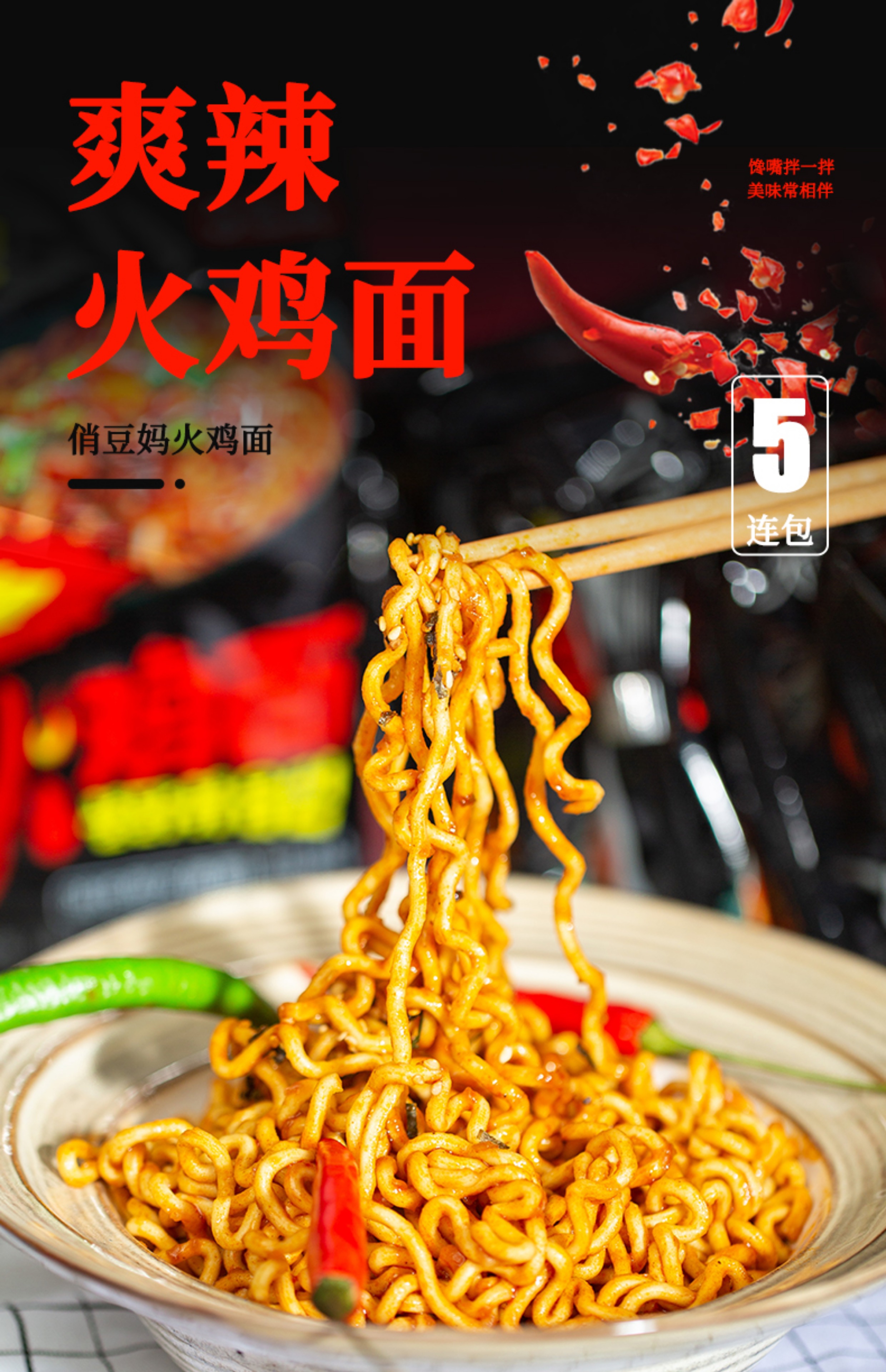 俏逗媽韓式火雞面116g*5包熱干面咸蛋面黃炸醬面方便超辣蟹黃拌面