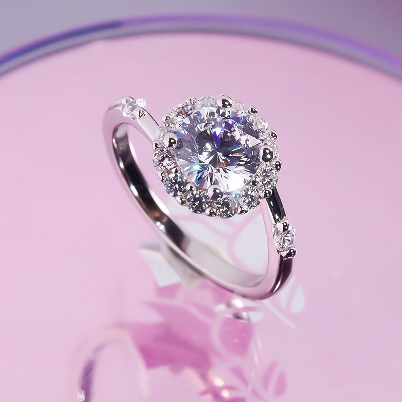 pt950鉑金進口莫桑石八鉆雪花戒指