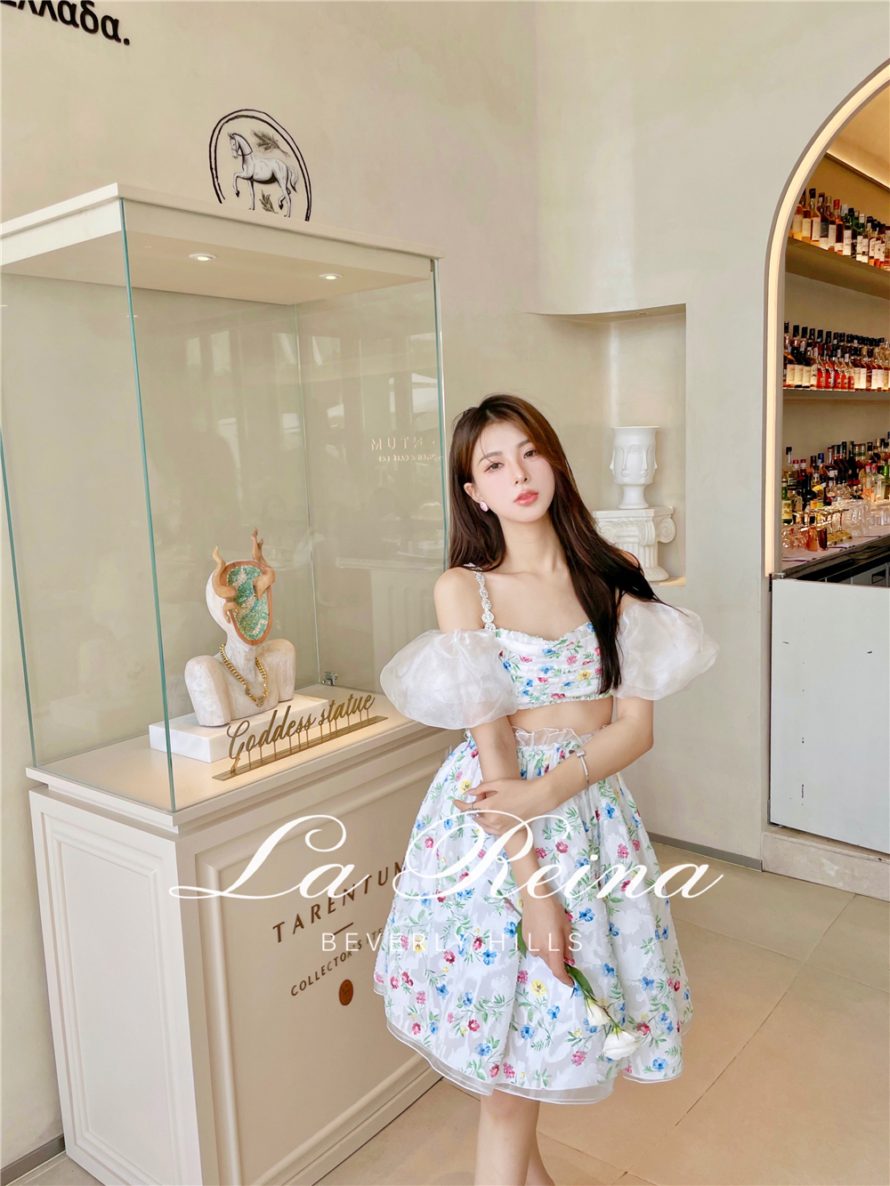【清貨折S】LA REINA 高定系列落肩泡泡袖圖案上衣蓬蓬紗裙套裝