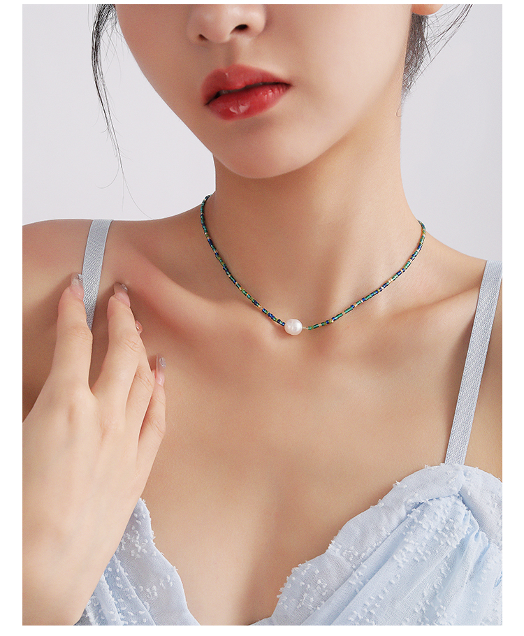 憶愛小眾設計感珍珠彩色串珠鎖骨鏈