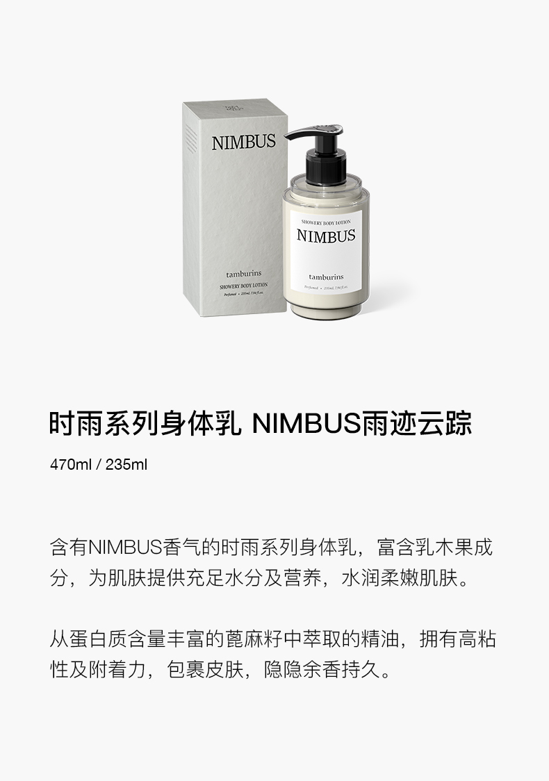 TAMBURINS時雨系列身體乳NIMBUS雨跡云蹤 JENNIE同款 滋潤留香