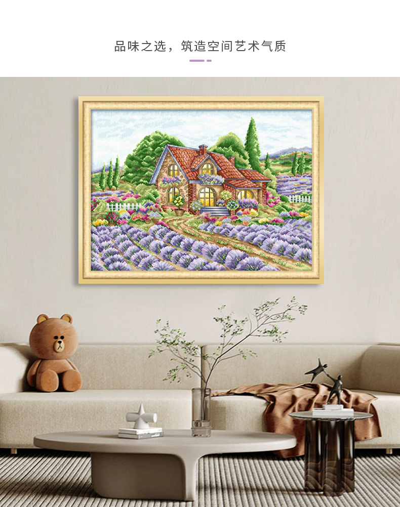 ks十字繡客廳2023新款客廳臥室風景掛畫薰衣草園線繡手工繡現代