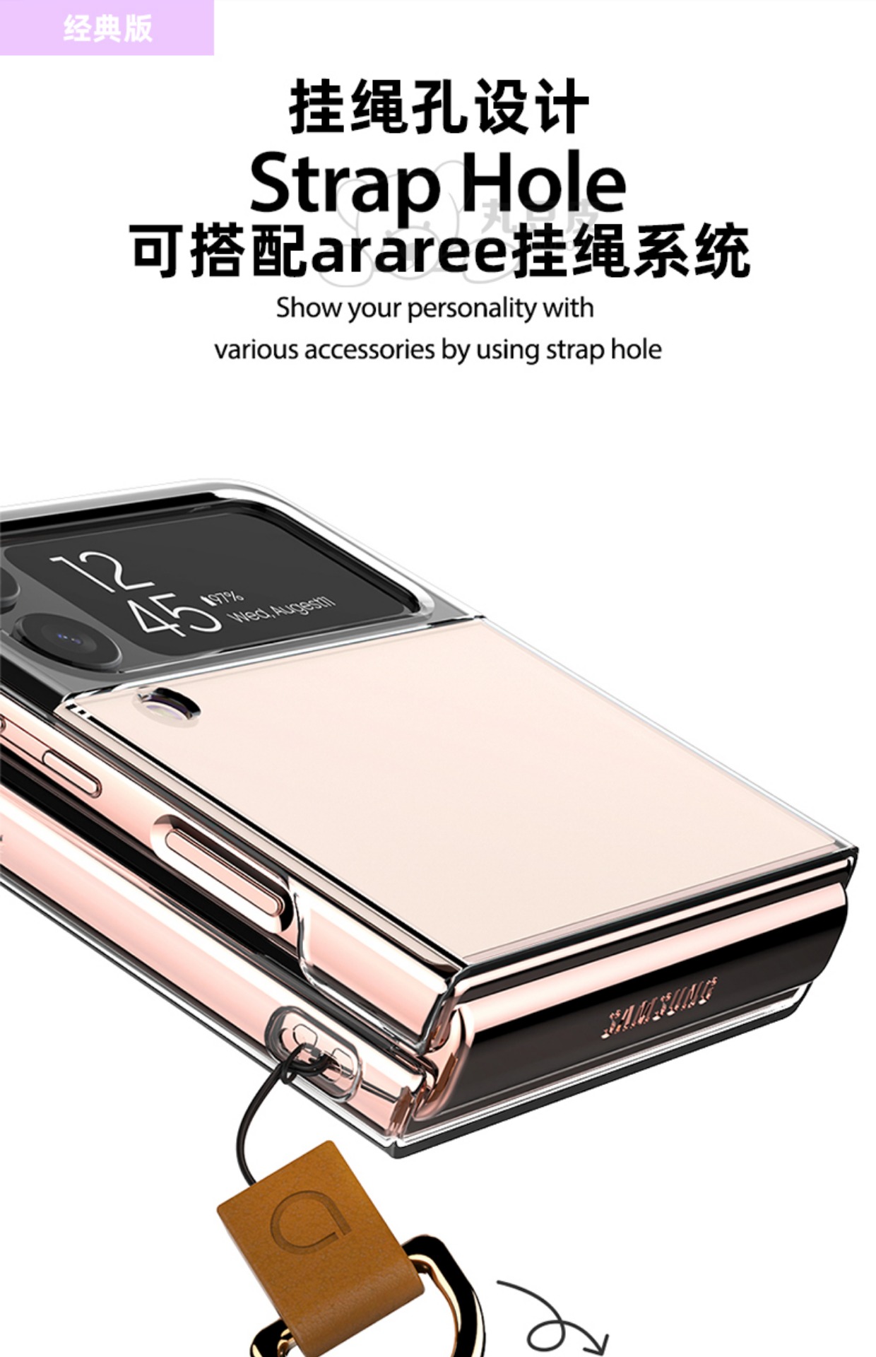 韓國araree適用三星z flip4可掛繩
