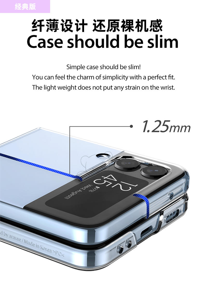 韓國araree適用于三星z flip5全包鉸鏈透明手機殼zflip5經典輕薄簡約磨砂保護套可掛繩網紅小紅書W24 flip