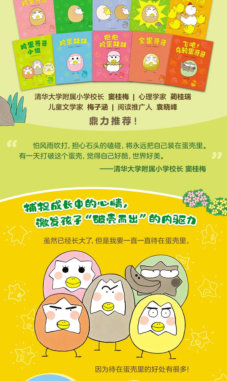 純真可愛的雞蛋哥哥和小伙伴們童趣十足!情節幽默、語言明快,讀起來朗朗上口,聽起來興致勃勃。