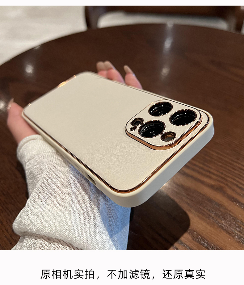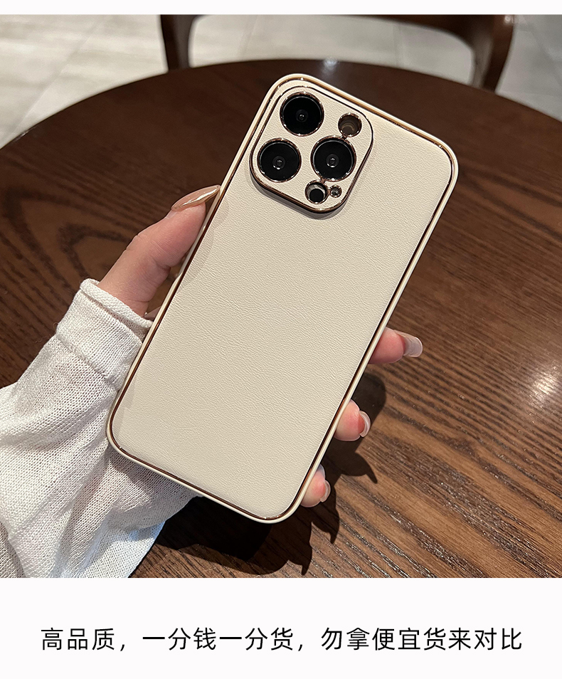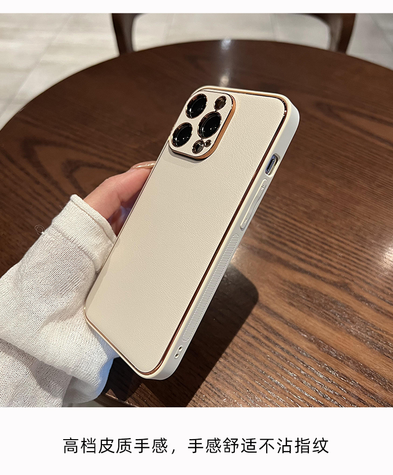 軒晴 高級感米白色磨砂皮質電鍍適用iphone14新款14pro蘋果13proMax手機殼12/11大氣簡約軟邊防摔保護套男女