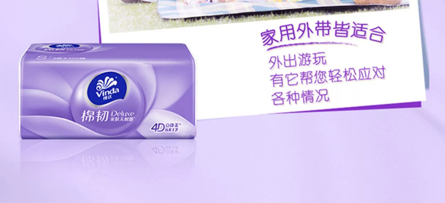 維達棉韌立體美抽紙100抽8包S碼家用衛生紙巾餐巾紙面巾紙實惠裝
