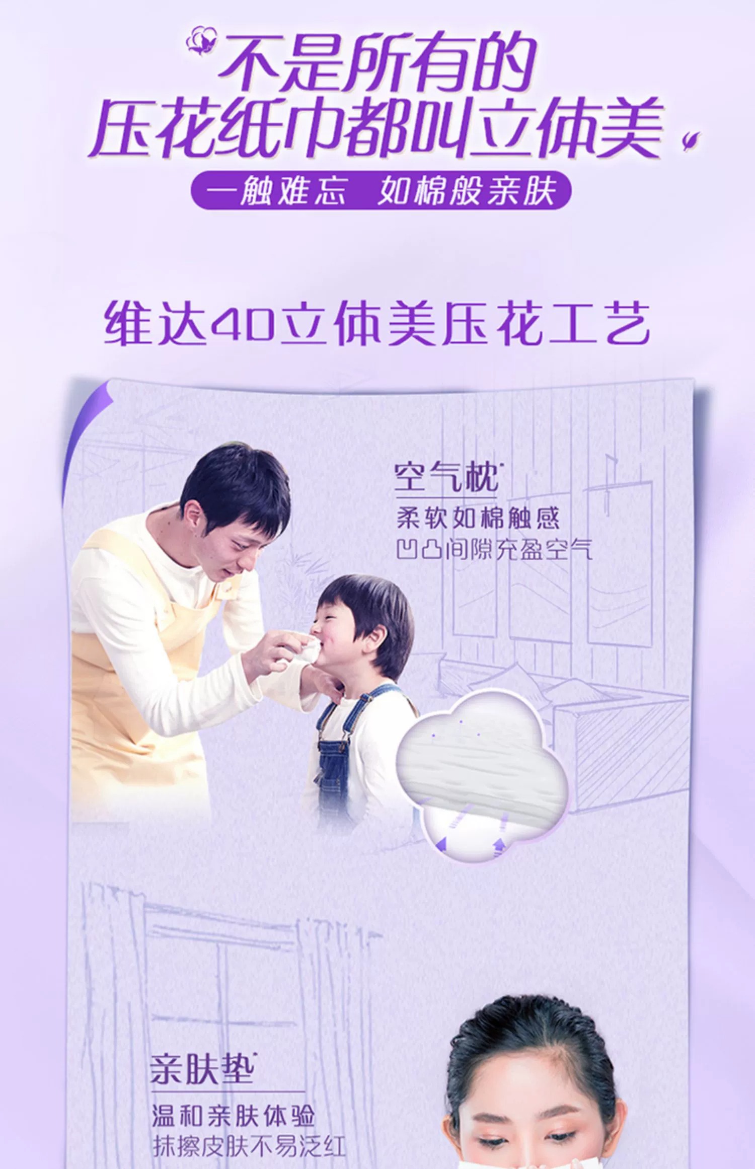 維達紙巾抽紙棉韌立體美24包家用實惠裝餐巾紙衛生紙面巾紙擦手紙