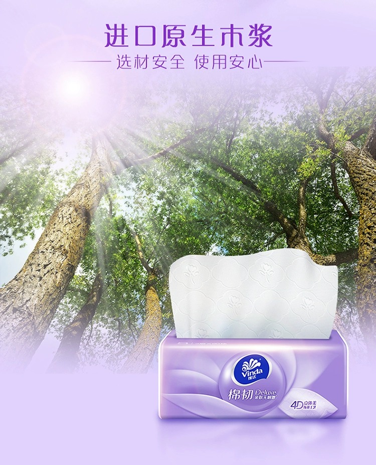 維達抽紙棉韌立體美紙巾100抽8包家用餐巾紙面巾紙衛生紙實惠裝