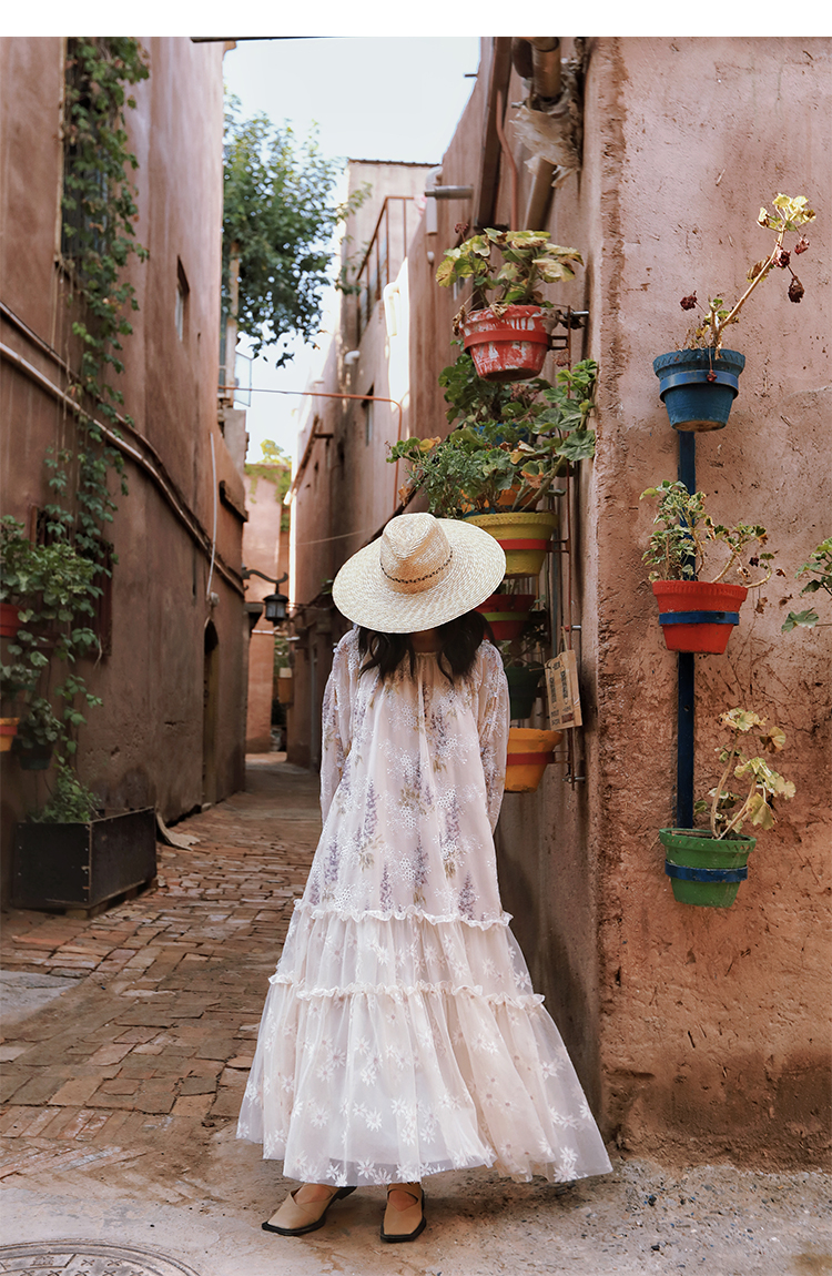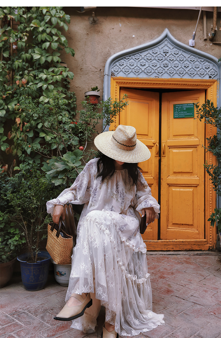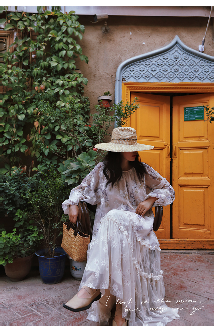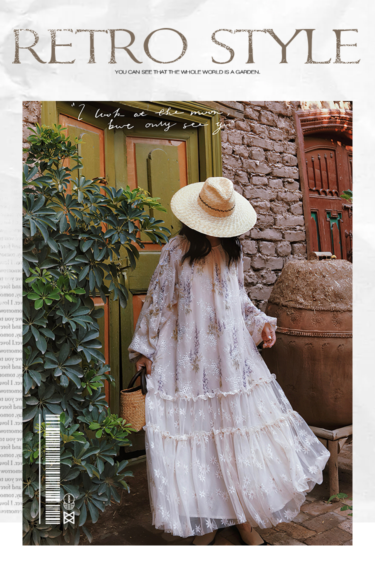 麥敘原創《紫丁香》慵懶風寬松重工蕾絲繡花拼接雪紡連衣裙春長款