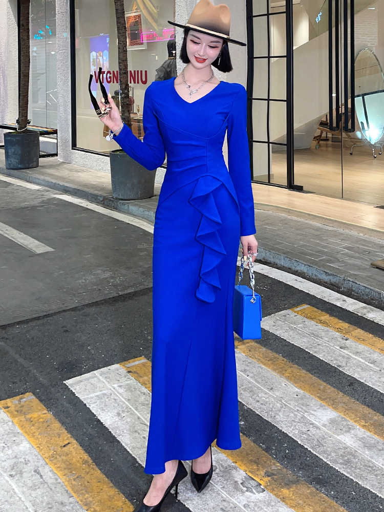 小眾高端長袖魚尾名媛氣質女晚禮服