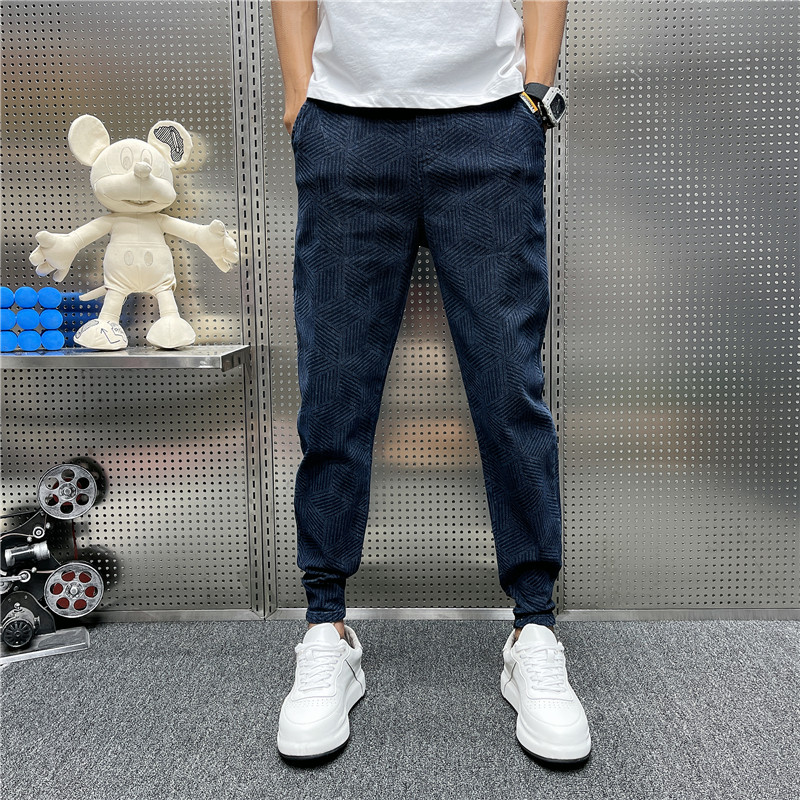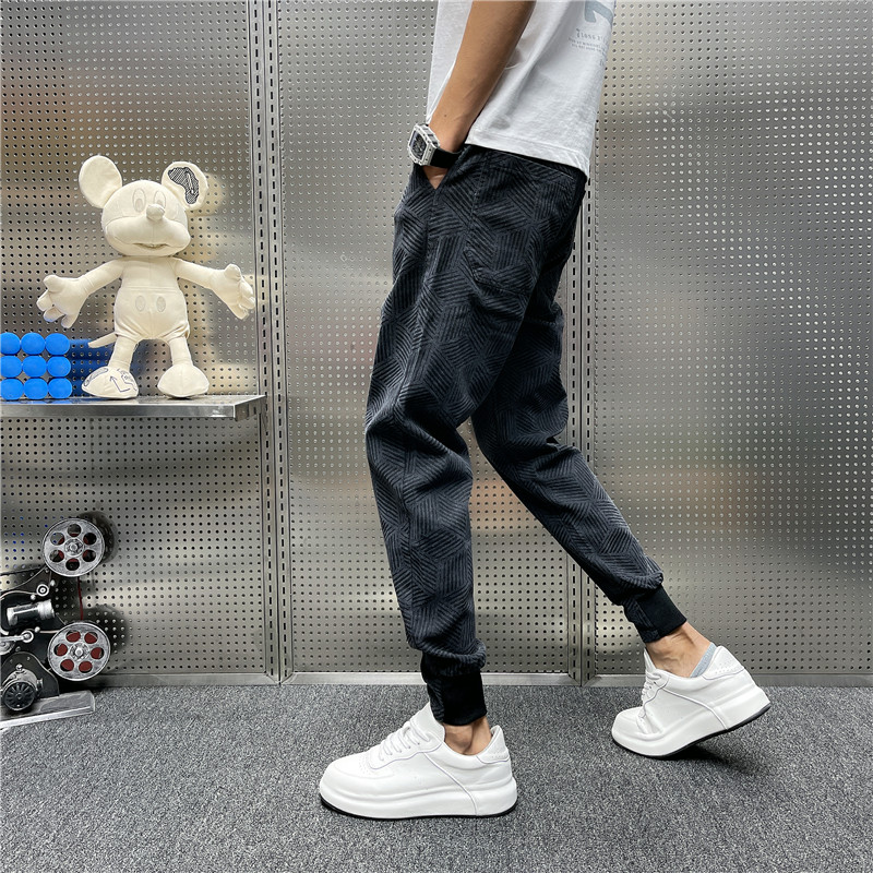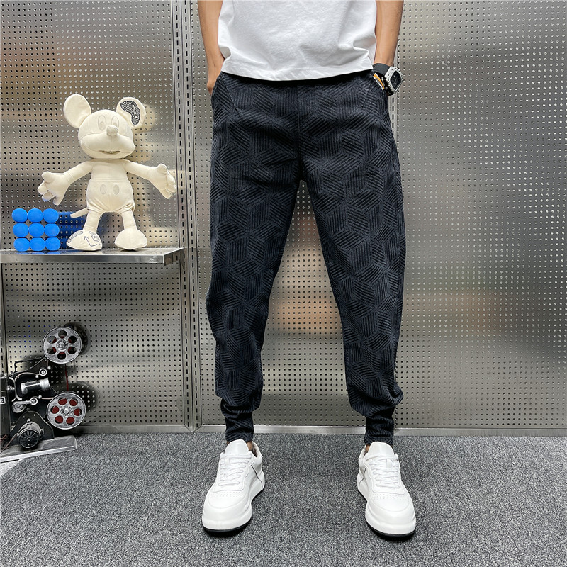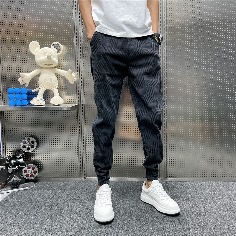 2023男士春秋新款小腳褲潮流束腳褲格子大襠哈倫褲抖音同款休閑褲