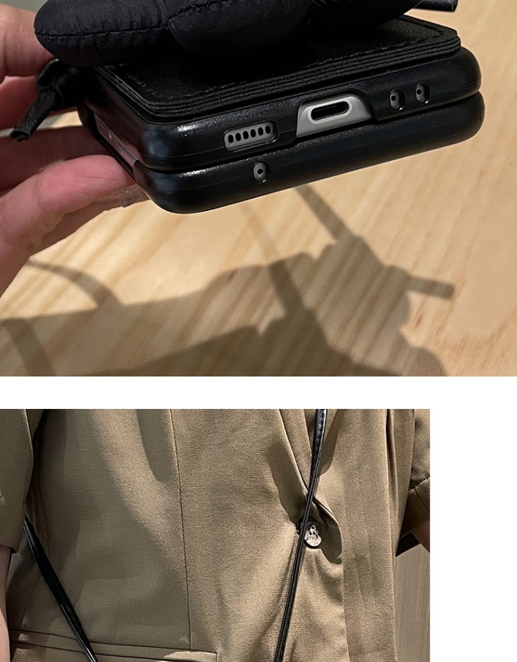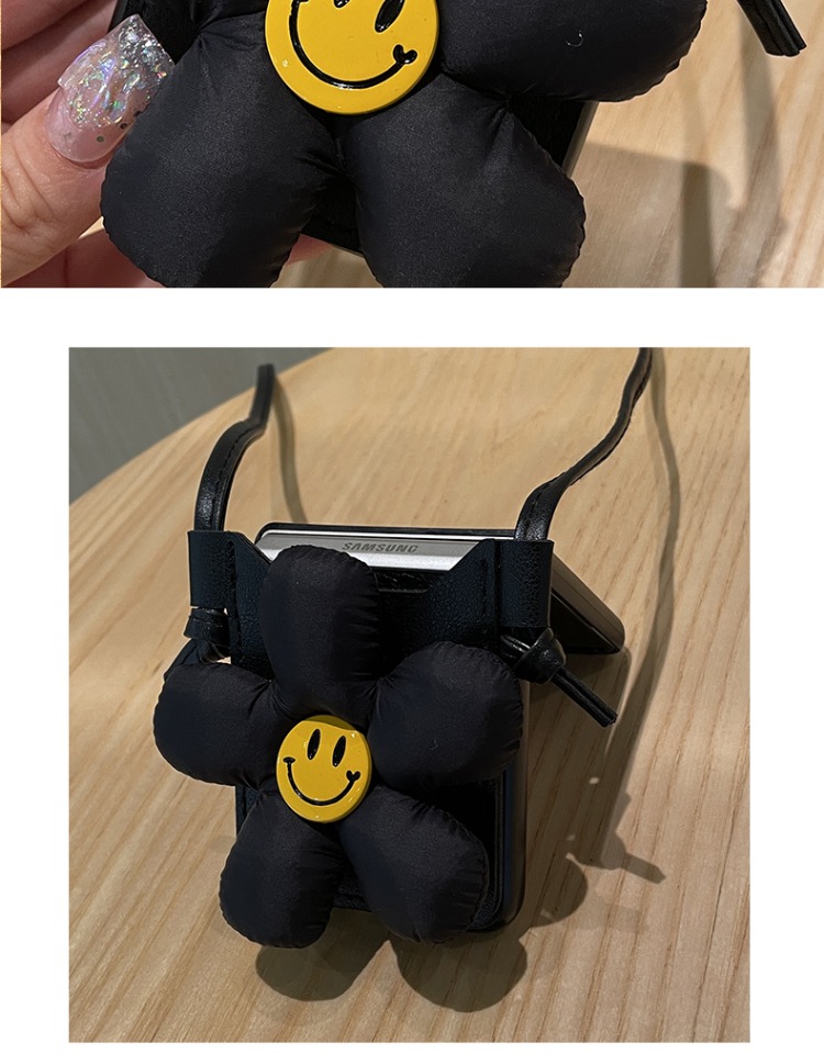 羽絨花插卡包適用于三星zflip4手機殼斜跨手機包折疊zflip5保護套笑臉w24flip防摔新款flip4零錢包zflip3外殼