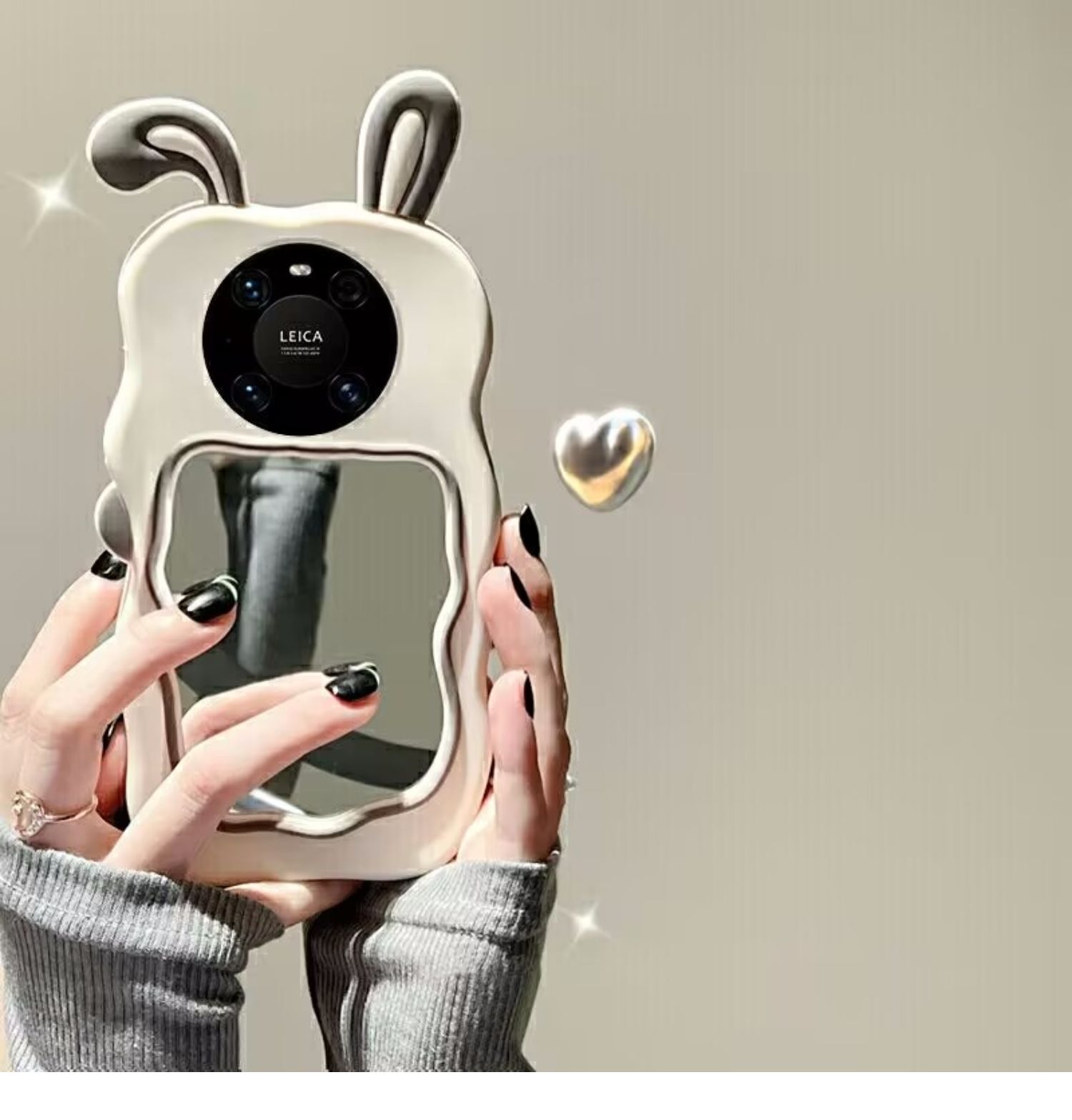 榮耀90立體兔耳朵化妝補妝鏡華為榮耀80手機殼榮耀60/50pro波浪邊軟硅膠x40個性防摔x30i女款honor70卡通可愛