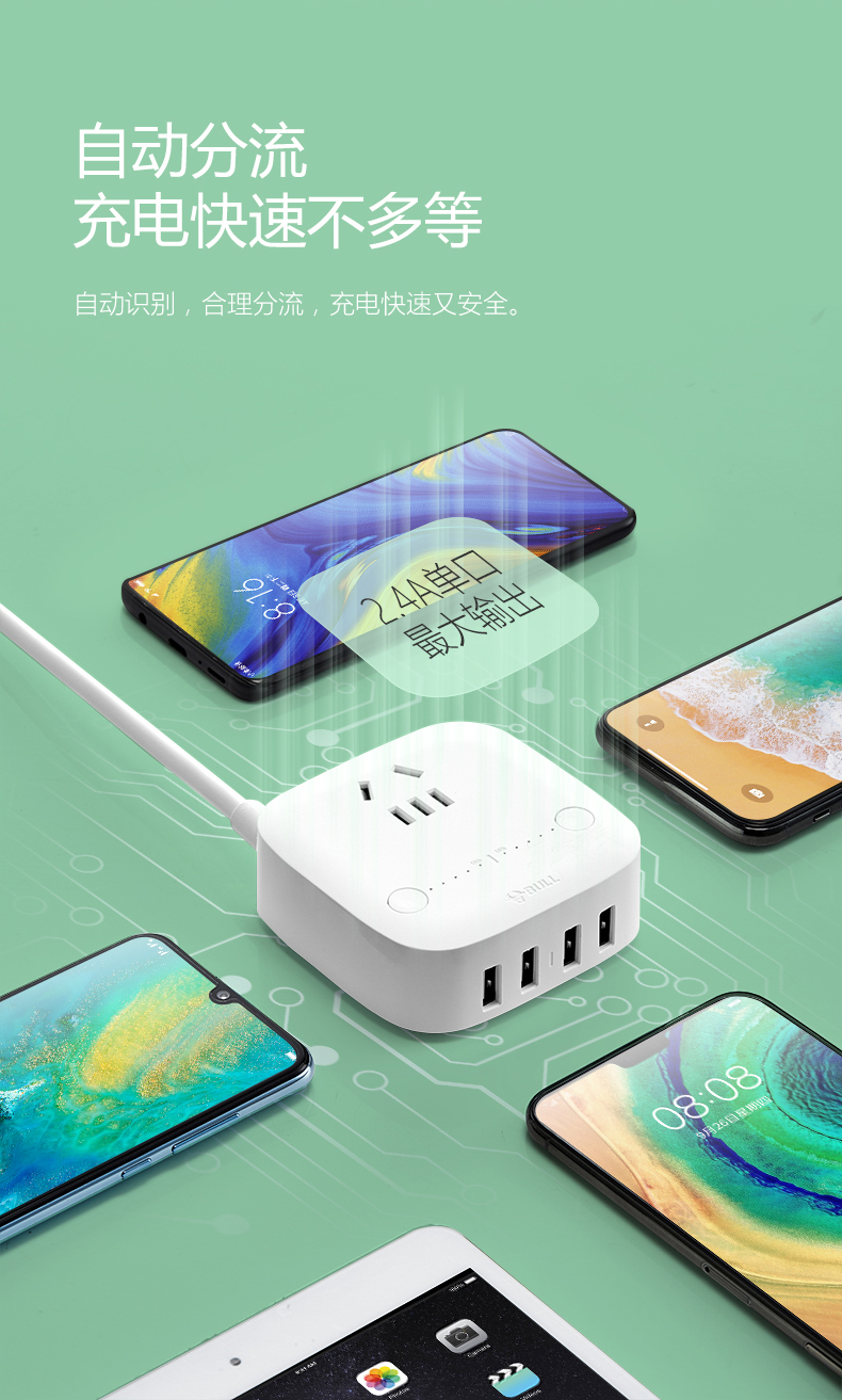 【王一博同款】倍思多功能插座桌面插線板插排usb充電排插接線板