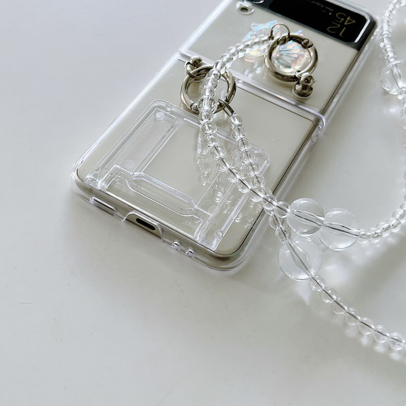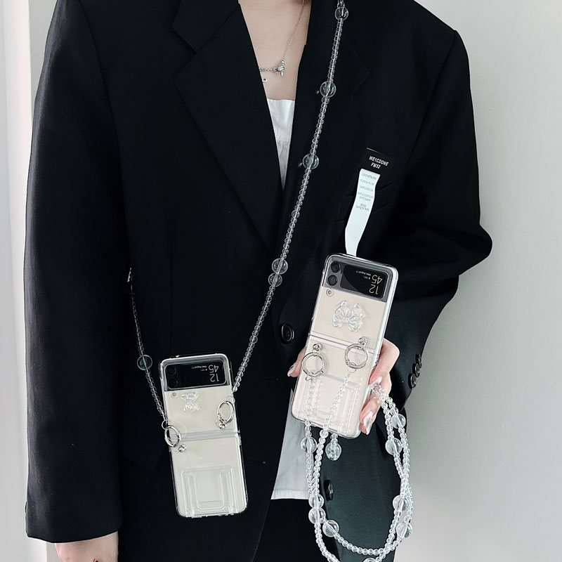 適用三星zflip5手機殼純透明INS韓風小清新愛心鐳射短手鏈提保護套三硬殼flip4手機殼折疊屏4簡約長斜挎繩3女