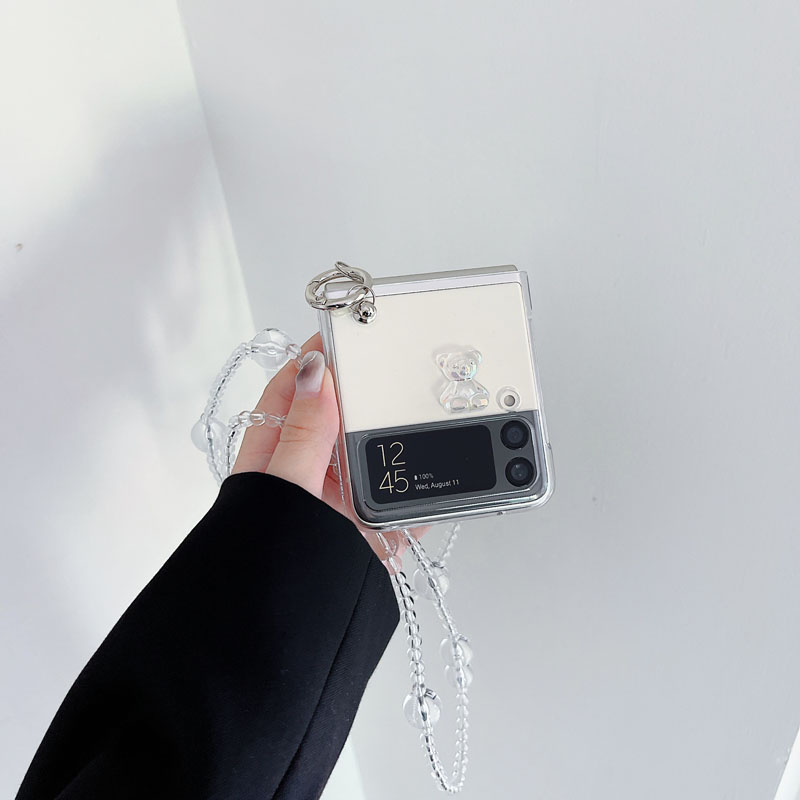 適用三星zflip5手機殼可愛卡通透明INS立體炫彩蝴蝶結小熊硬殼防摔保護套三代斜挎長繩flip4手機殼折疊屏4四3