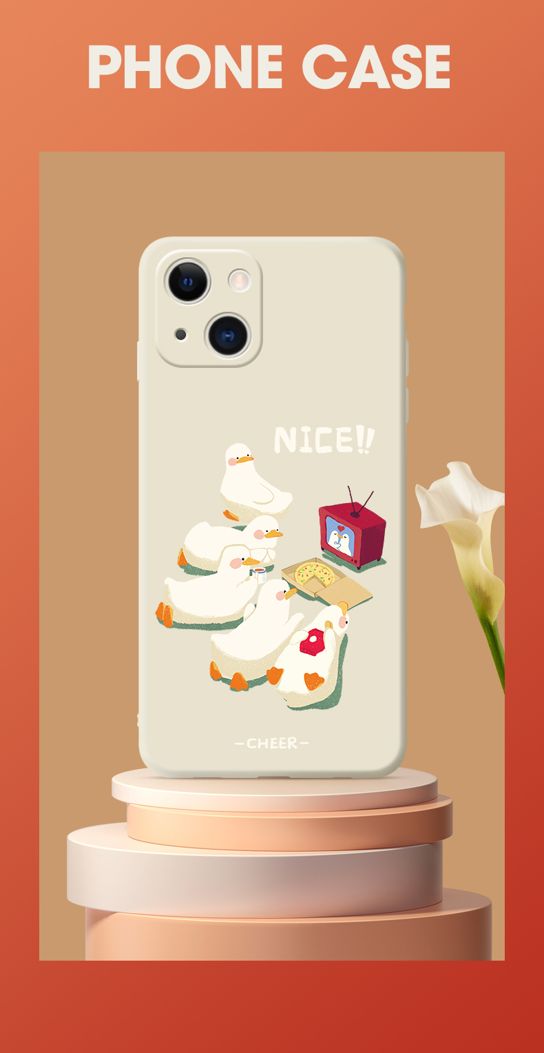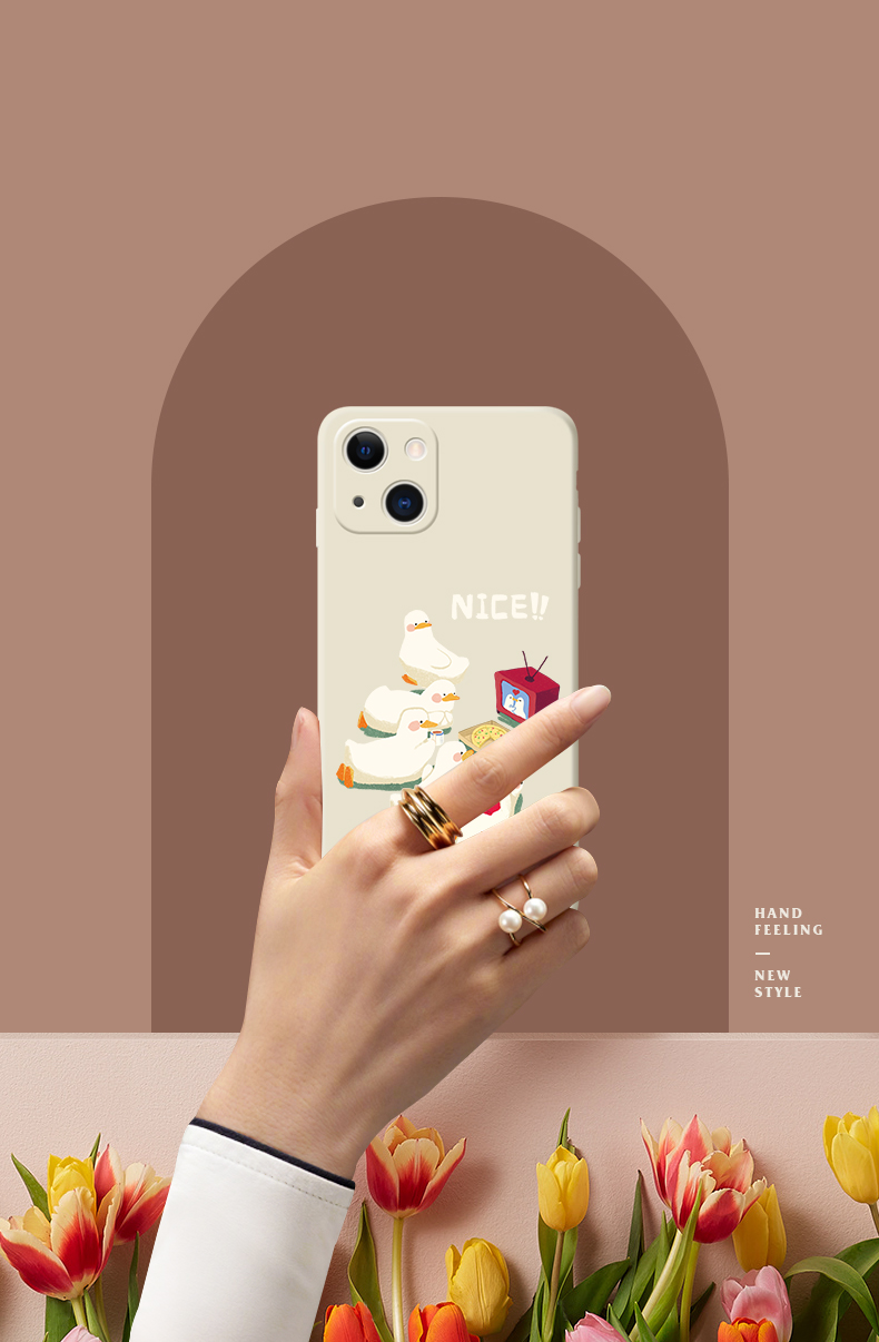 適用于蘋果14promax手機殼創意鴨子看電視iphone12透明軟殼13液態硅膠保護殼7plus卡通可愛15pro小眾不撞殼款