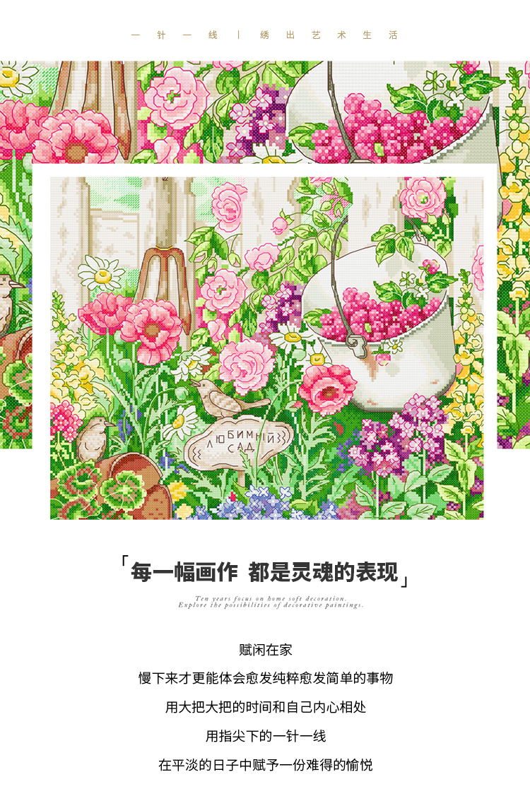 花卉十字繡2023新款線繡現代簡約客廳掛畫滿繡最愛花園手工自己繡